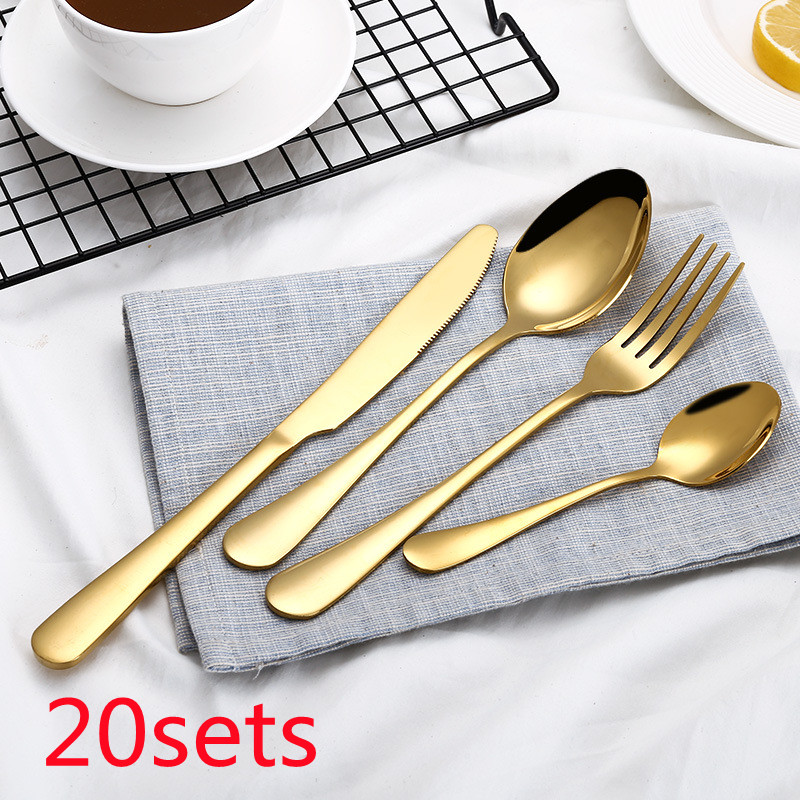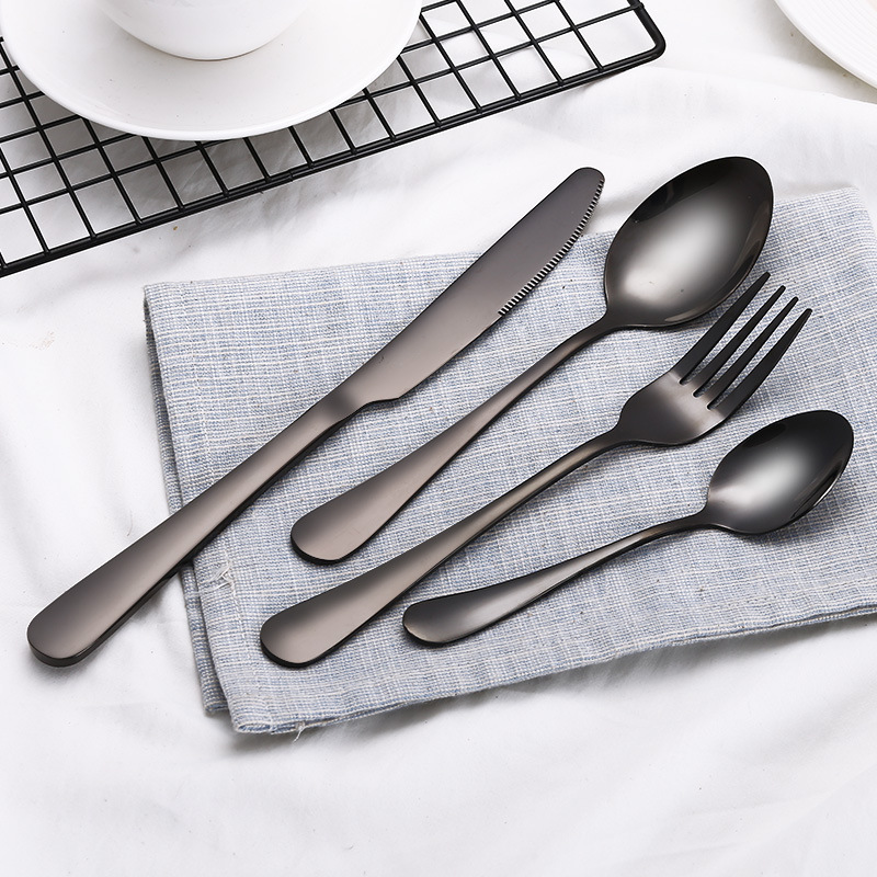 High Grade Tableware Set Black Gold Plated Stainless Steel Knife And Fork