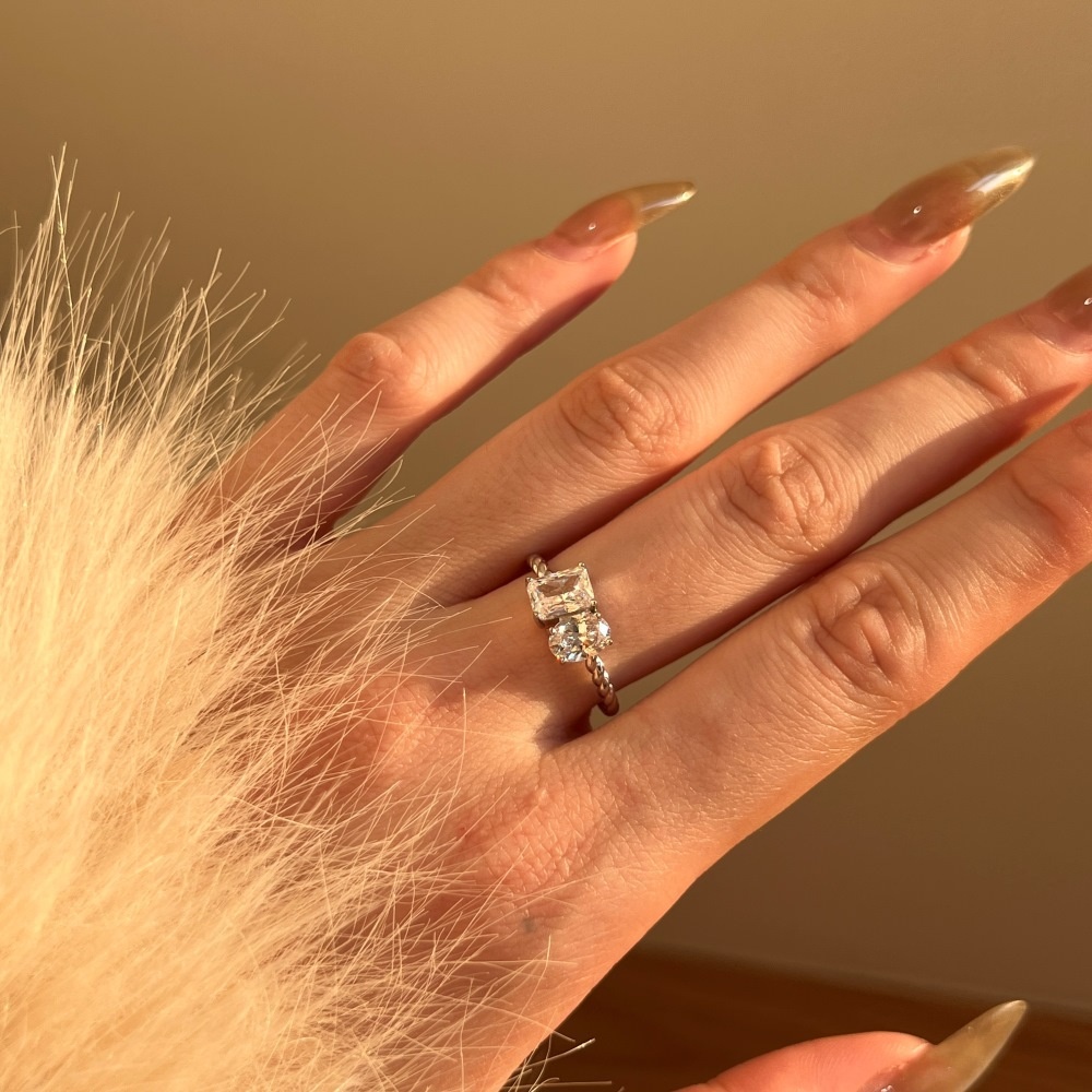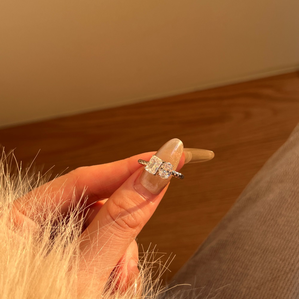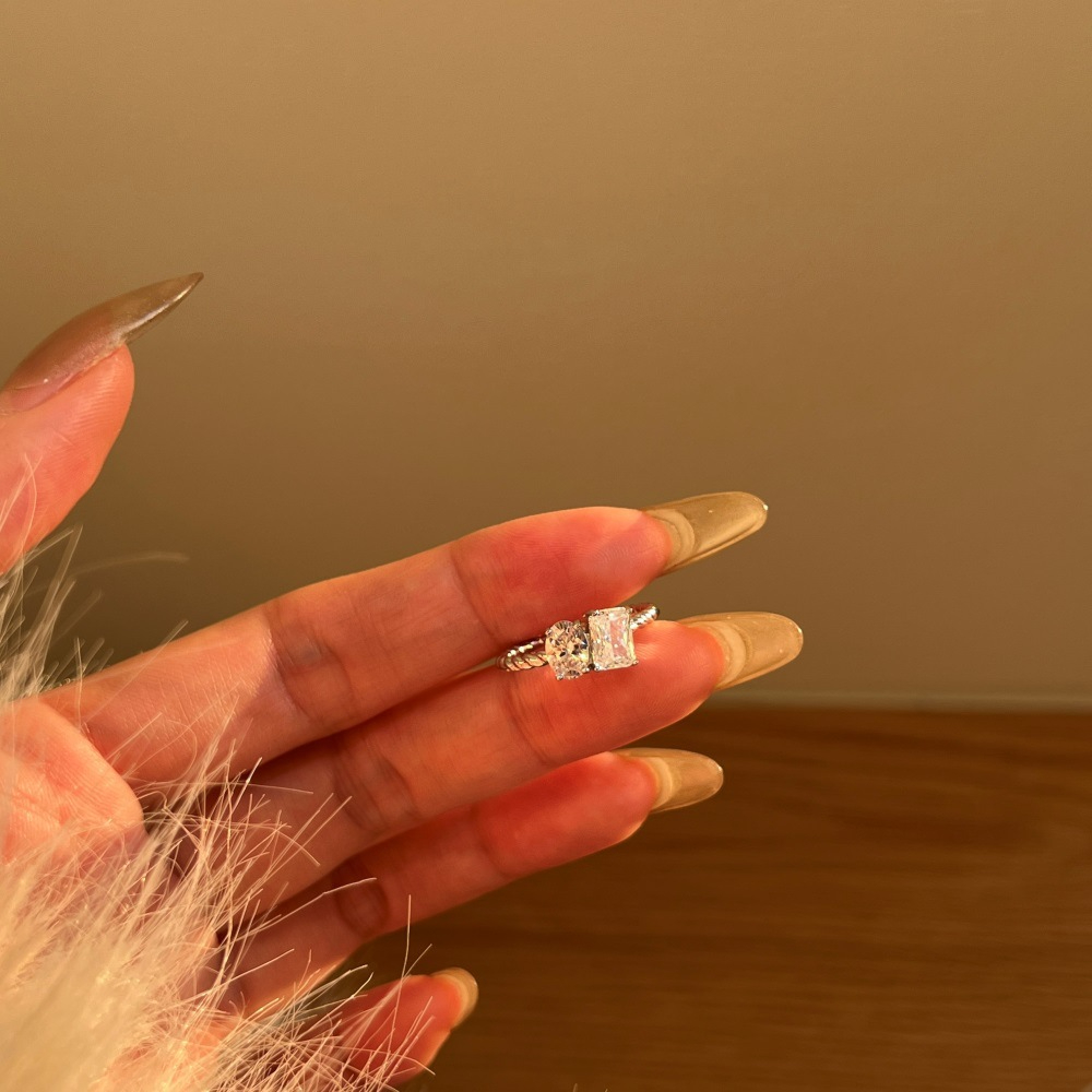 High-grade Temperament Personalized Twist Inlaid Zircon Silver Ring