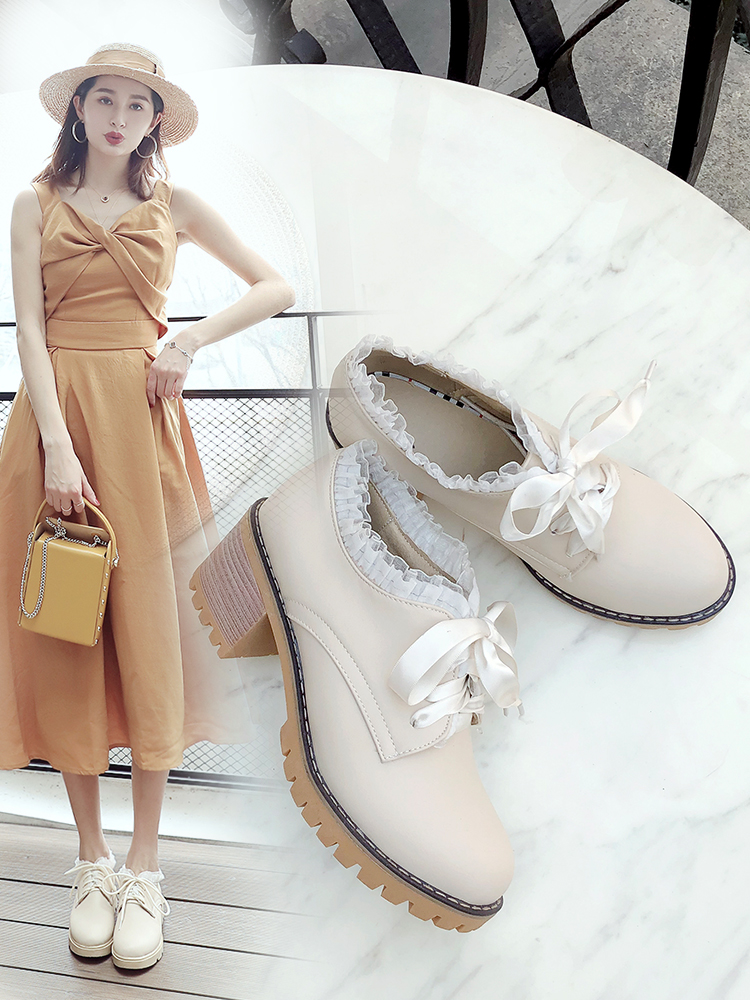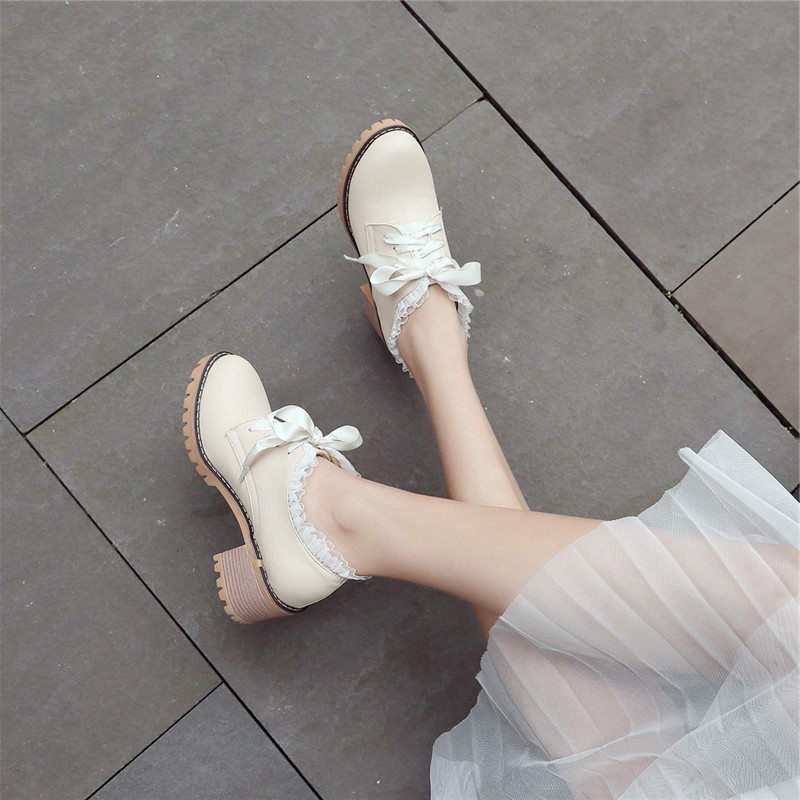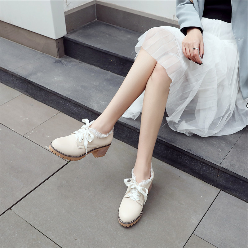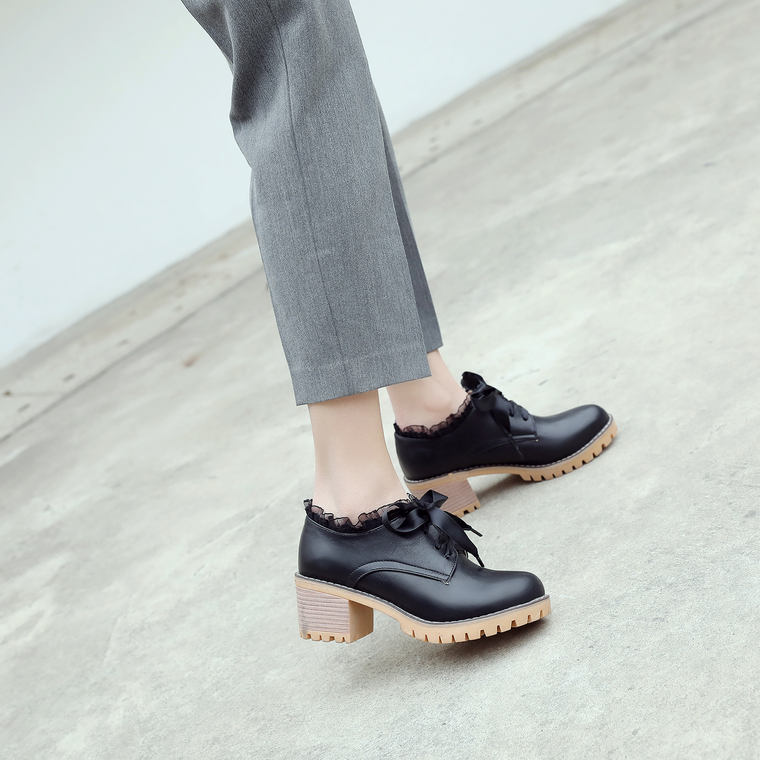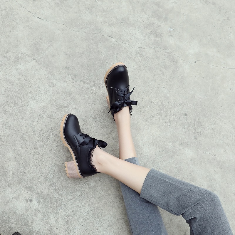 Material: LeatherStyle: British styleFeatures: thick heelColour: black, white