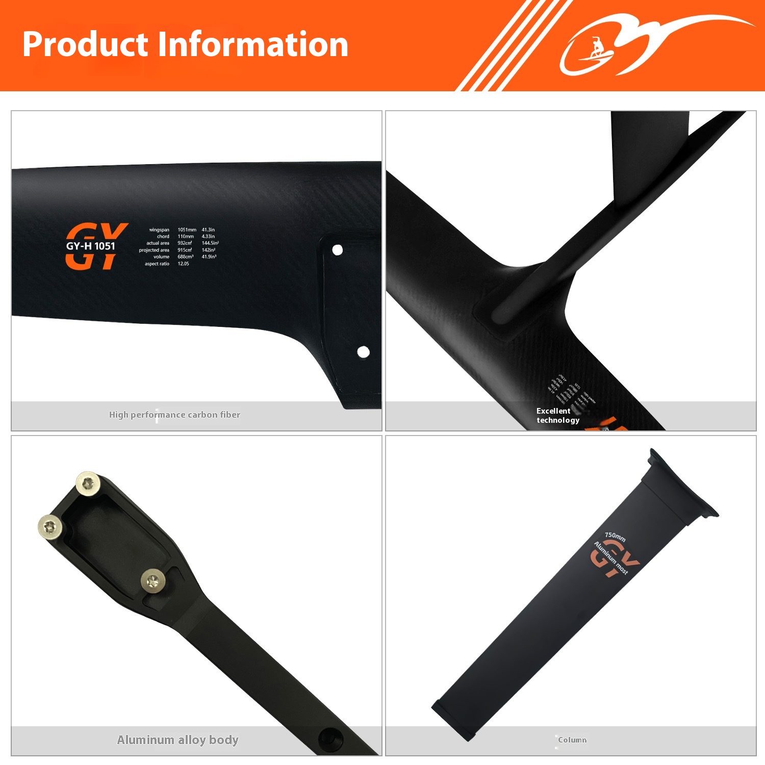Product information:Product Category: Surfboard Material: aluminum alloy carbon fiber Front wing size: 1051mm * 110mm