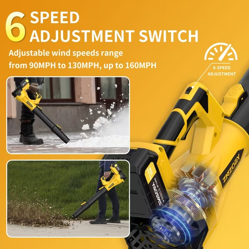Powered by a 4.0Ah rechargeable battery, it provides reliable and extended runtime without the hassle of cords or gas. The 6-speed adjustable control allows you to customize airflow intensity depending on your cleaning needs, whether you're removing delicate debris or tackling heavy leaf buildup.