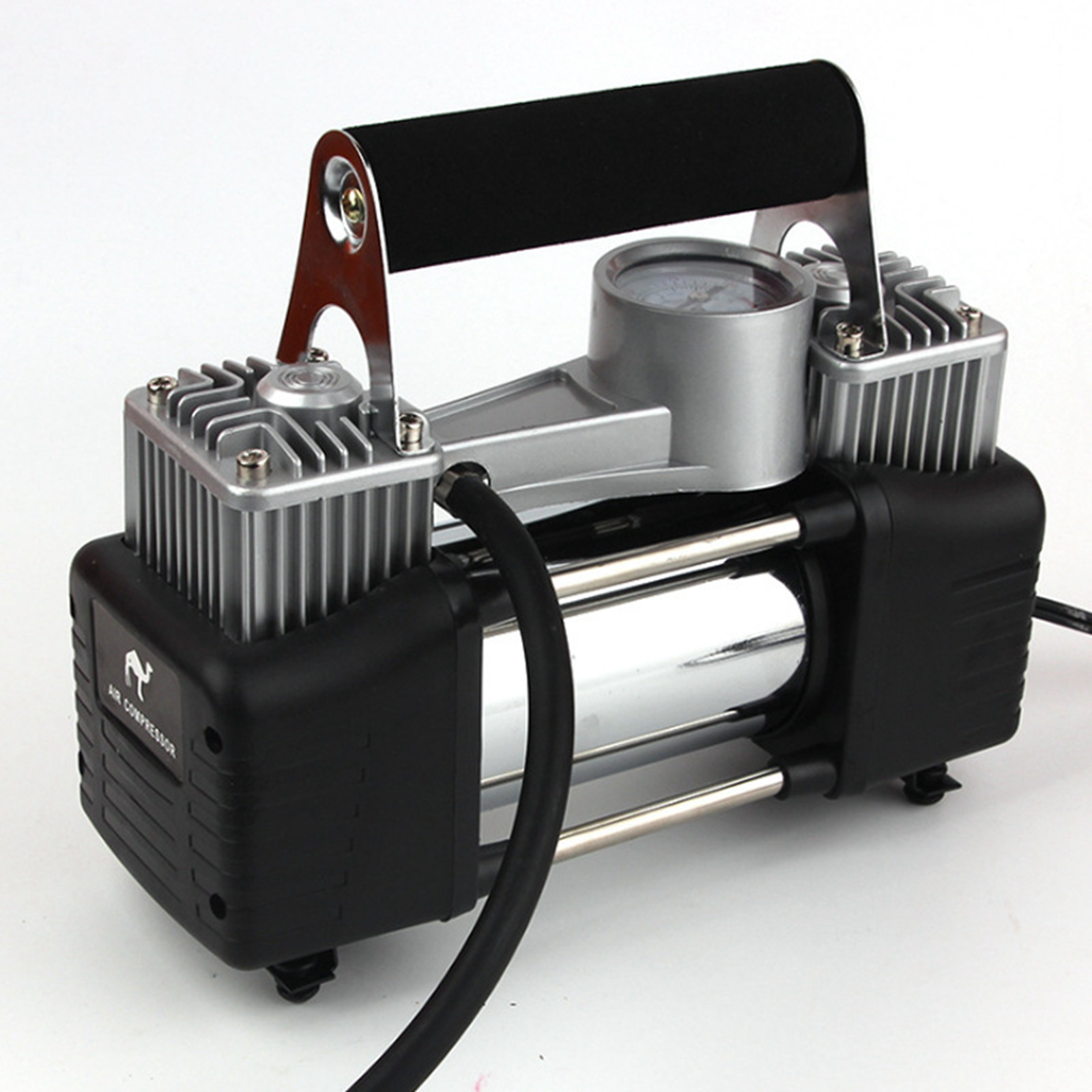 Take out the battery clip of the power cord (without the cigarette lighter plug), and directly clip it to the positive and negative level 2 of the battery. Do not touch the short circuit of the wire. Turn on the switch to inflate. (The power of the double-cylinder inflator pump is high, and it cannot be directly plugged into the cigarette lighter through the converter to obtain electricity, which is easy to burn out the cigarette lighter and wiring on the car)