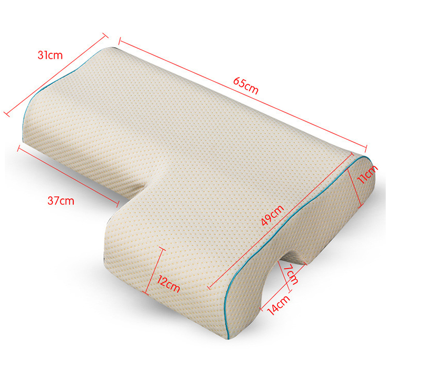 According to the principle of ergonomics, combined with the sleeping body shape of the human body, the arm is easily placed in the groove to relieve the pressure of the arm in all directions, avoid numbness, and prevent the facial nerves from being compressed.