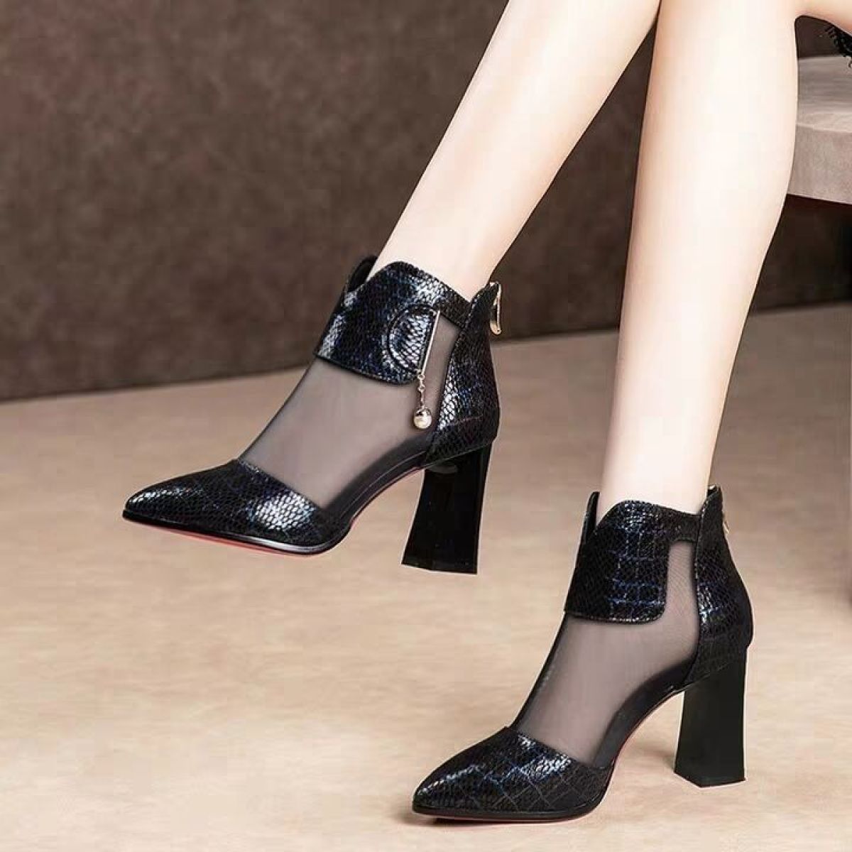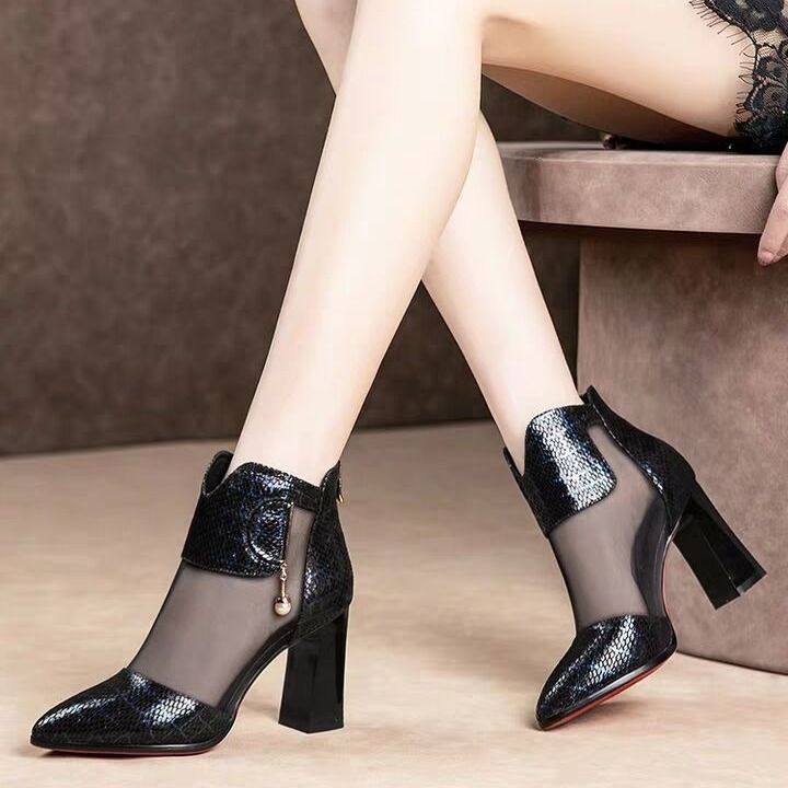 High Quality Sandals Women's Thick Heel Mesh Short Boots