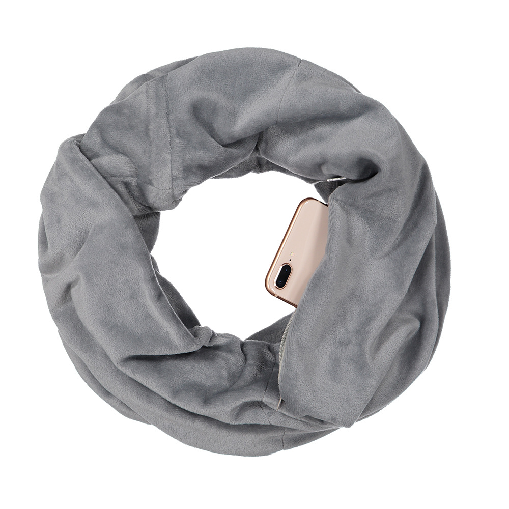 High Quality Soft Plush Warm Scarf Unlimited Zipper Travel Pocket Bib
