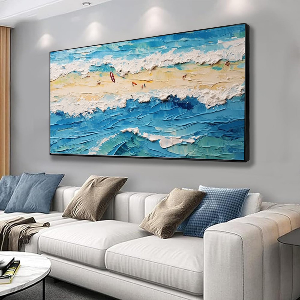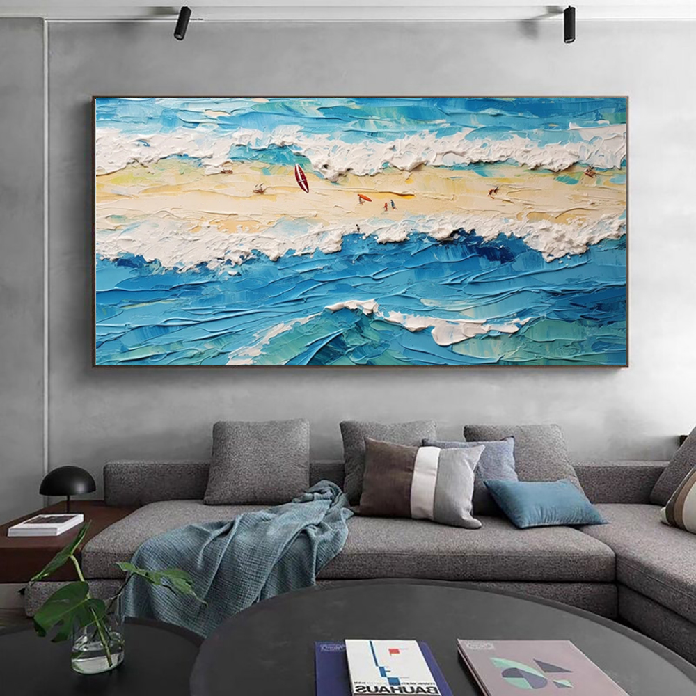 High Quality Sports Surfing Handmade Oil Painting Knife Beach Sea Sailboat Landscape Large Canvas Art Showpiece For Home Decoration Living Room Wall Picture