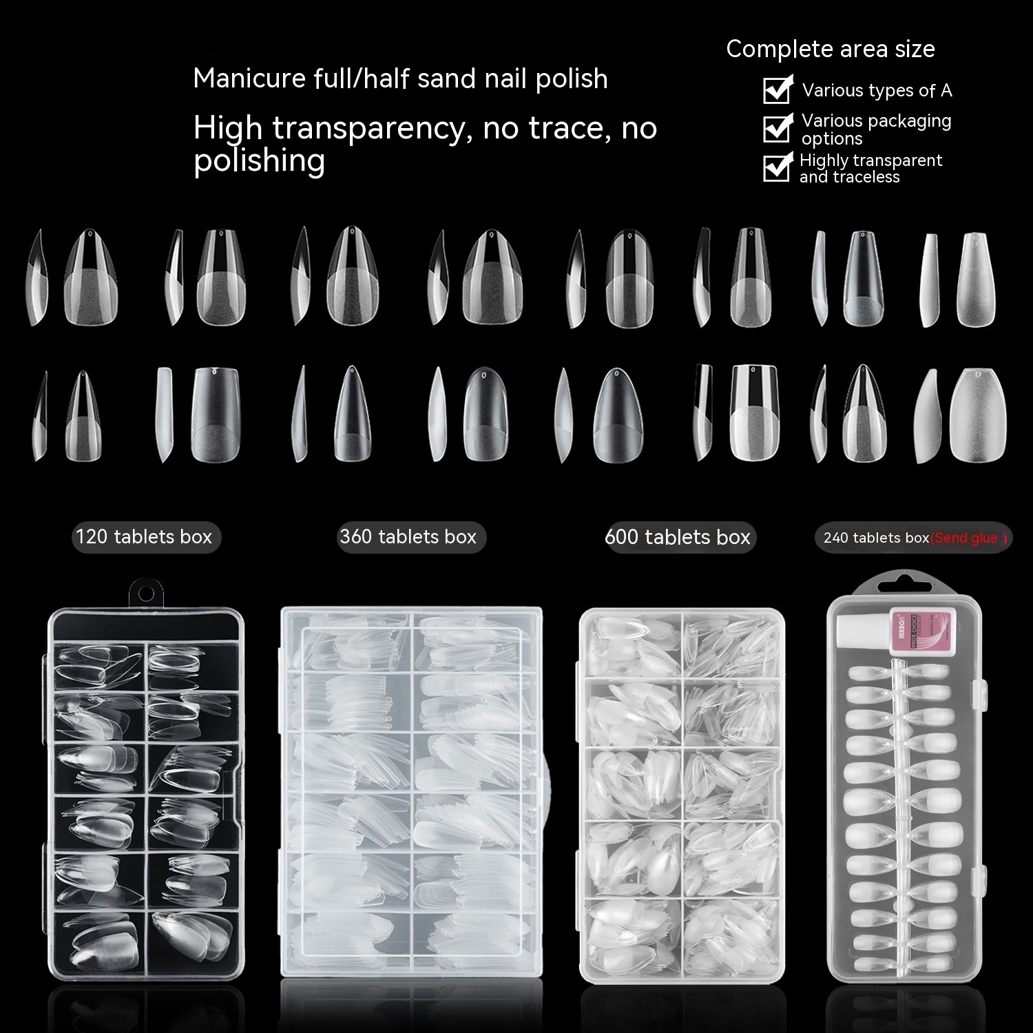 Color: 01 almond half sand, 02 medium and long ballet half sand, 03 water drops half sand, 04 fat almond half sand, 05 Oval half sand, 06 long ballet half sand, 07 long spikes are half sand, 08 medium and long squares are full of sand, 09 long ballet is full of sand, 11 drops of water are full of sand, 12 long spikes are full of sand, 13 medium and rectangular are half sand, 14 long drops of water and half sand, 15 short ballet full of sand, 16 long ballet full of sand, 17 short square half sand, 18 short ballet half sand, 19 short ladder ballet half sand, 20 short almond half sand, 21 Small Round Square half sand, 22 short fat almond half sand