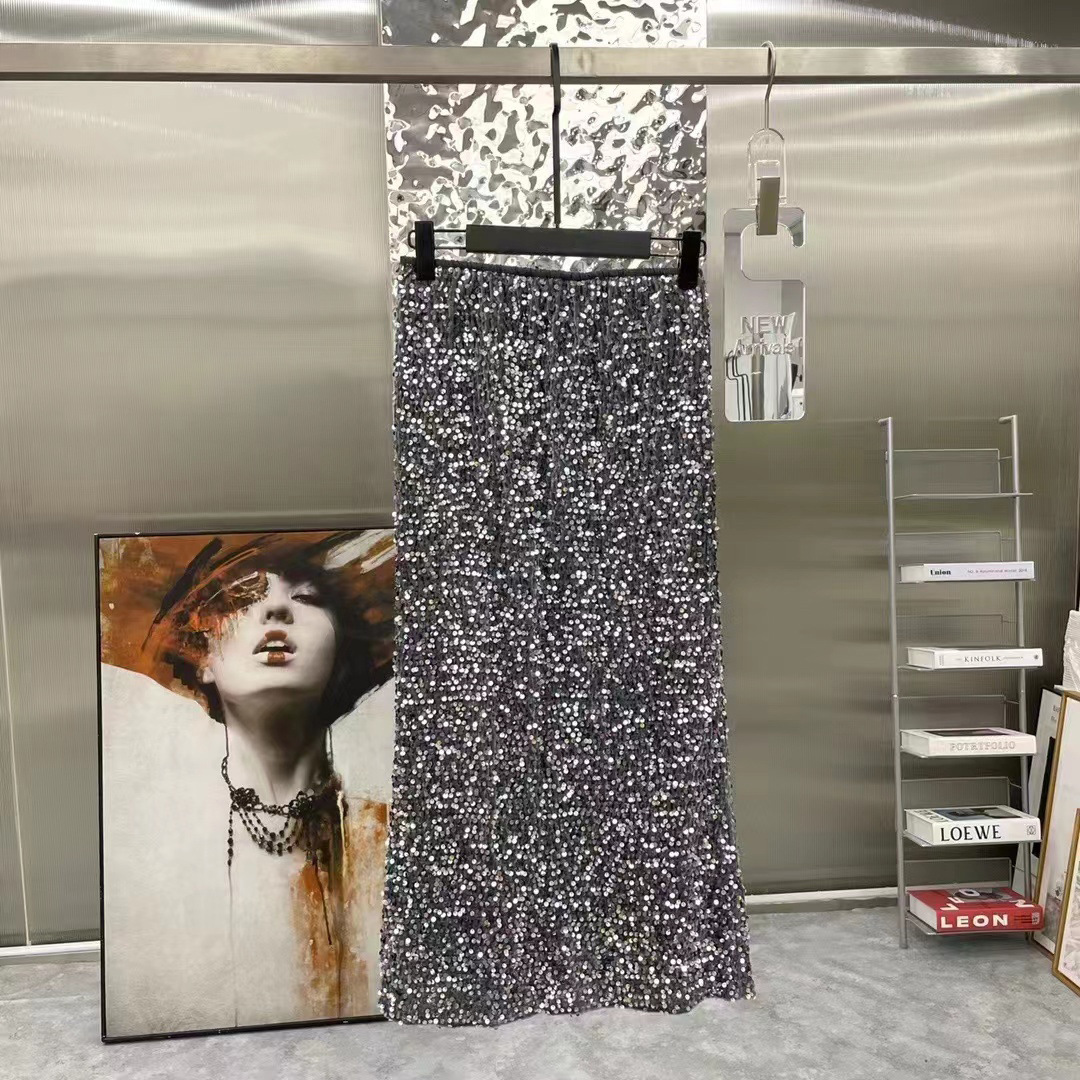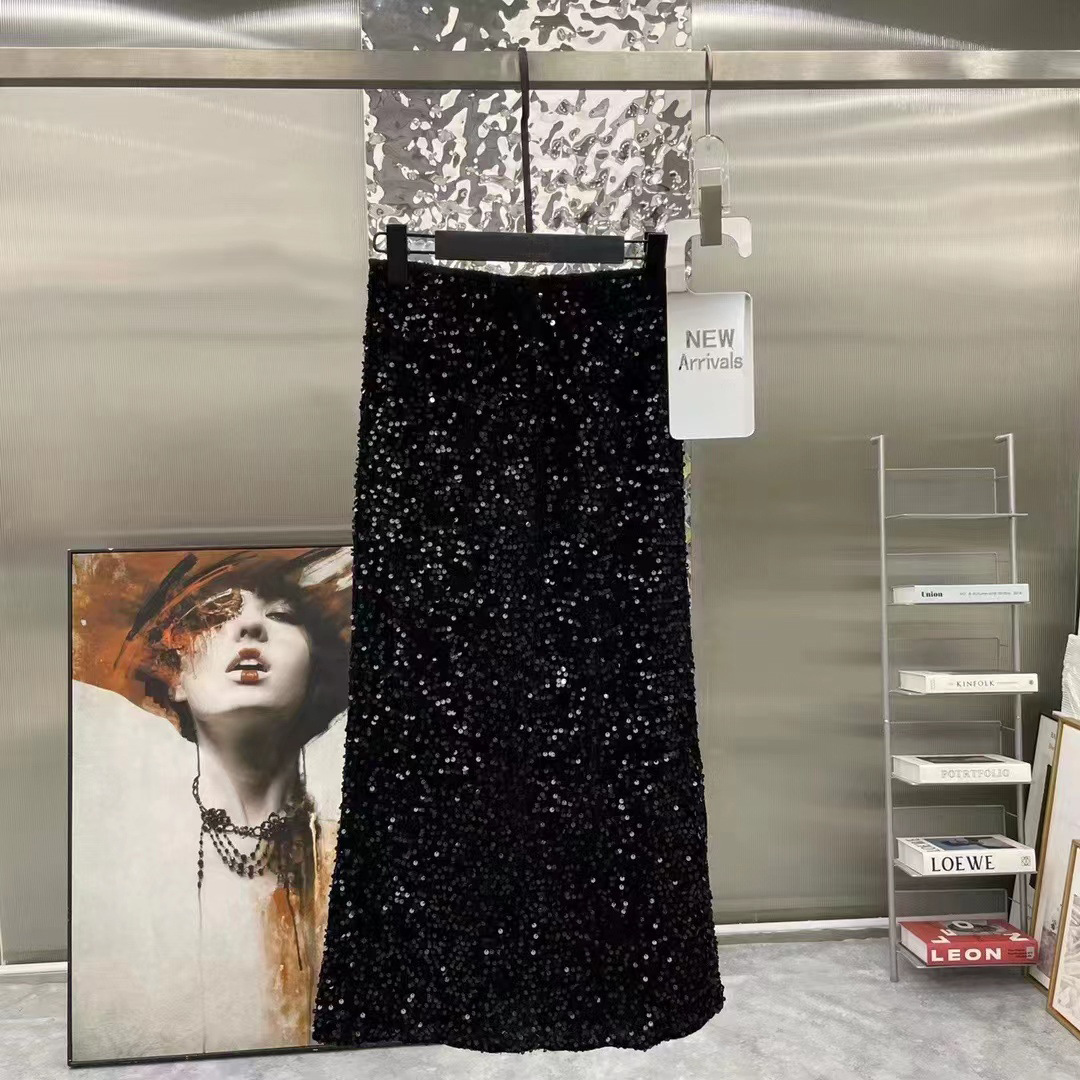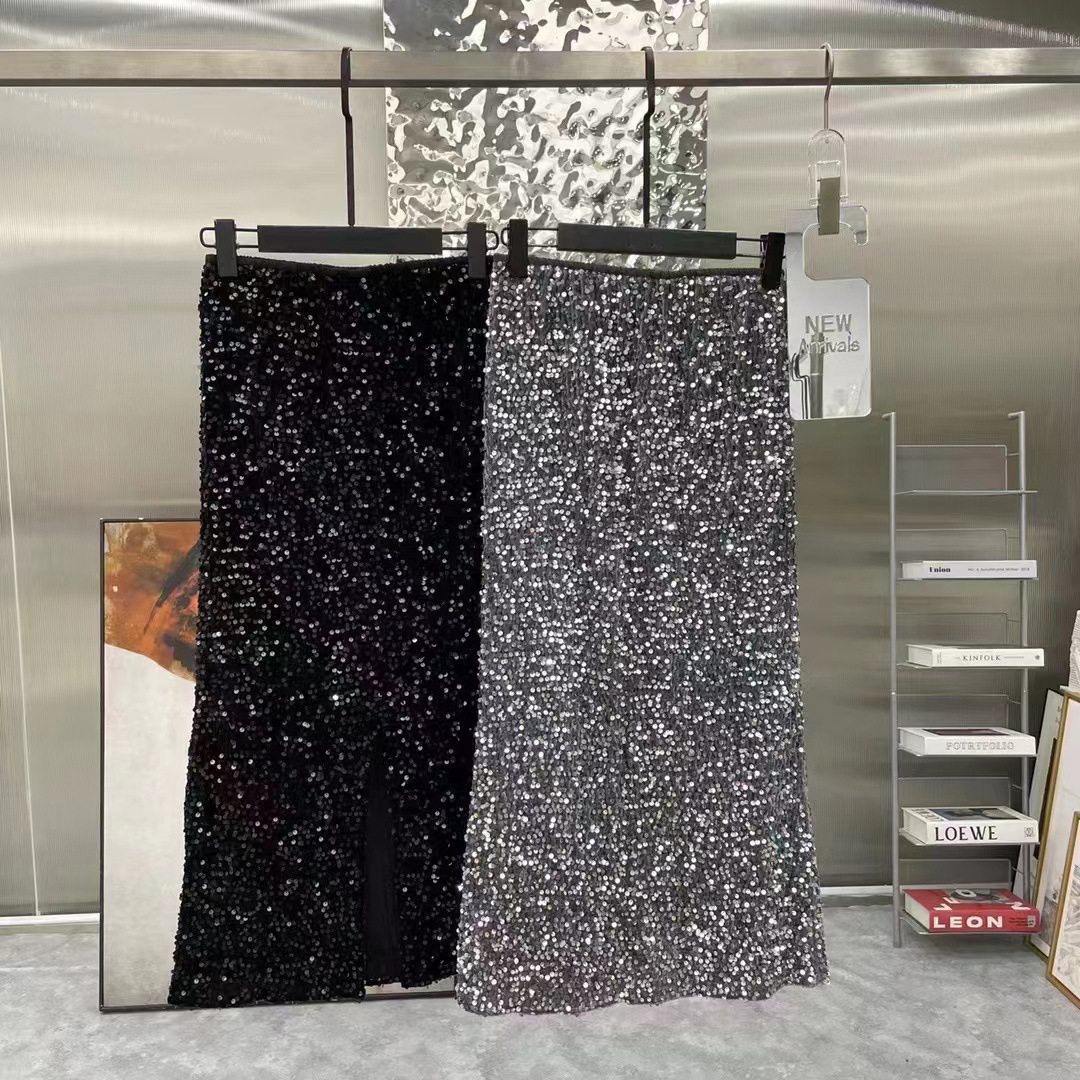 Color: Black (sequined mid-skirt), starry sky gray (sequined mid-skirt)