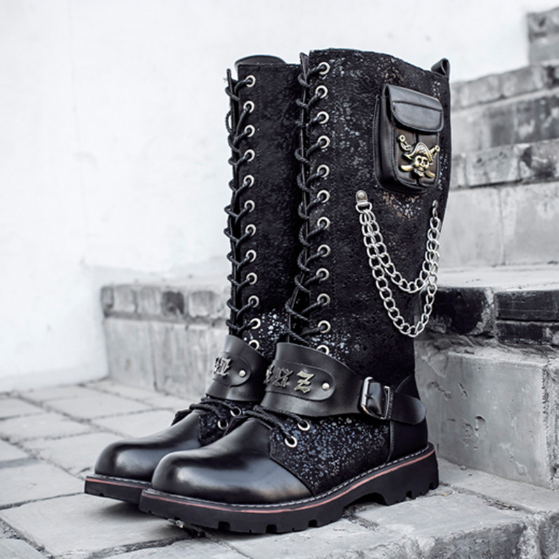 High Riding Boots Men's Frosted Locomotive Long Barrel Rock Punk