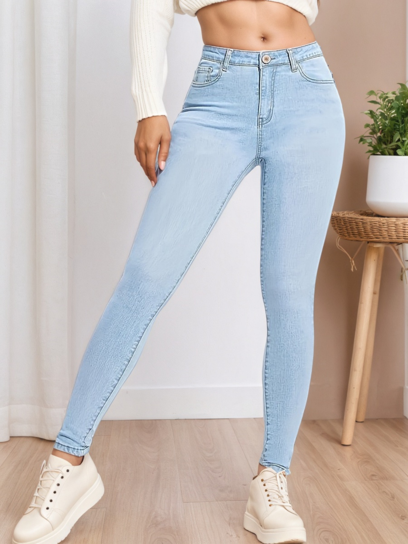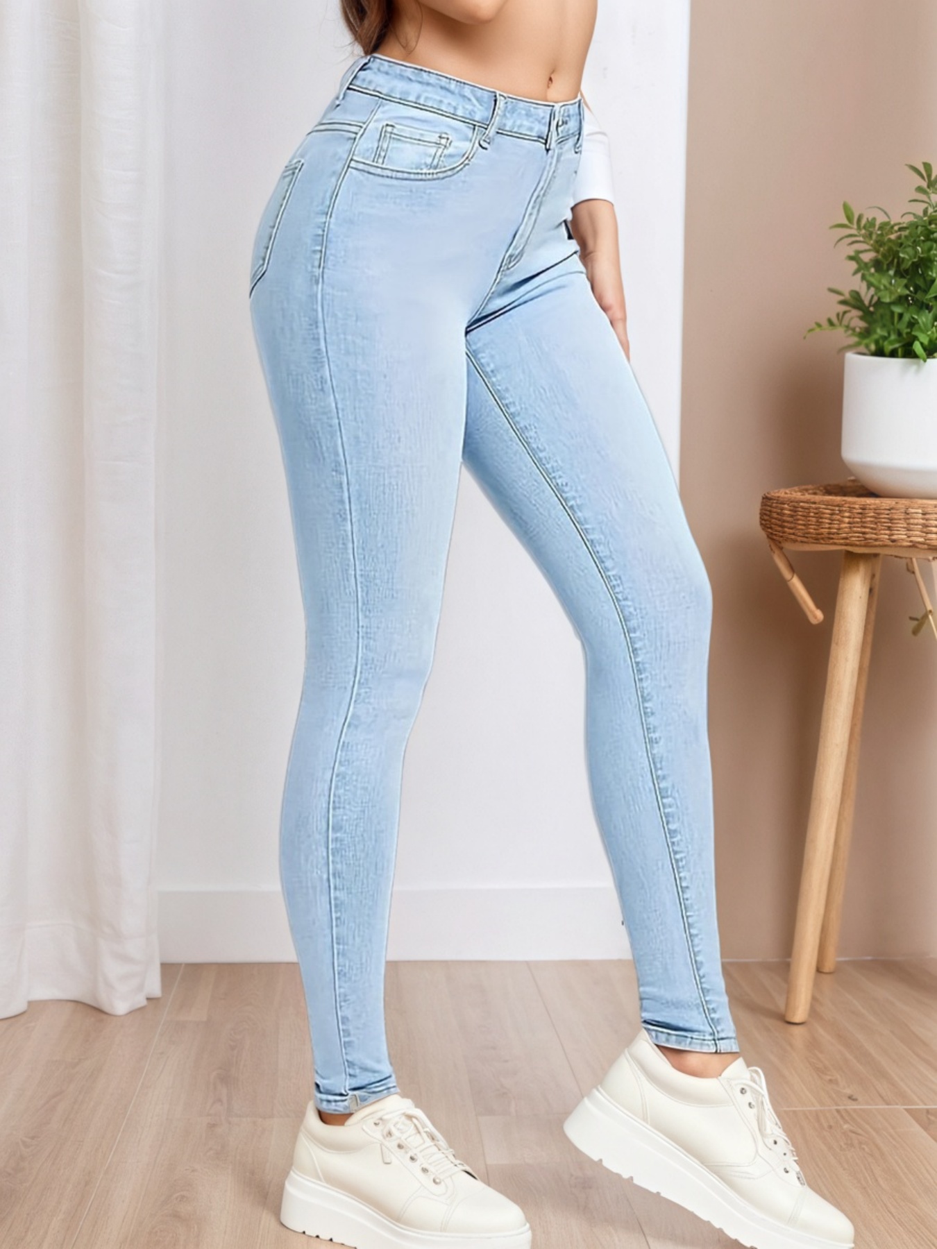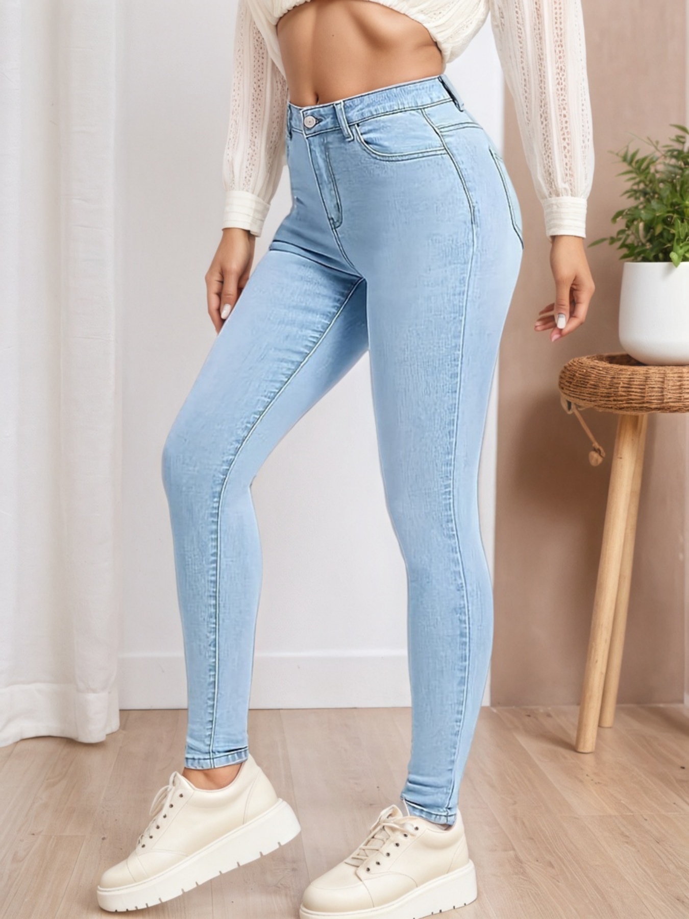 High-Rise Slim Fit Blue Jeans - Stretchy Denim, Slant Pockets, Comfortable High-Stretch Fabric, Womens Fashionable Denim Pants For Everyday Wear - Premium Quality, Soft Touch, And Stylish Design Amazo