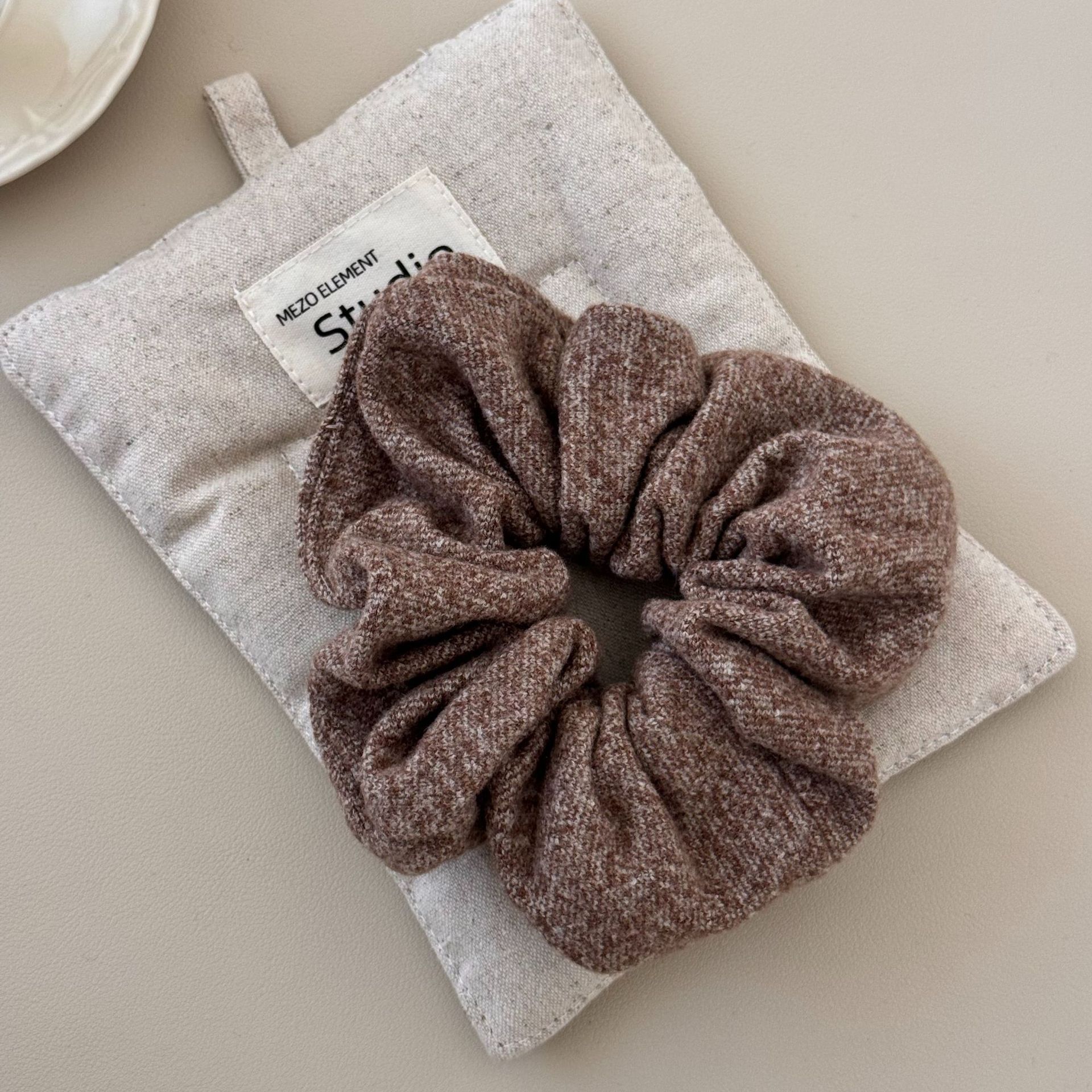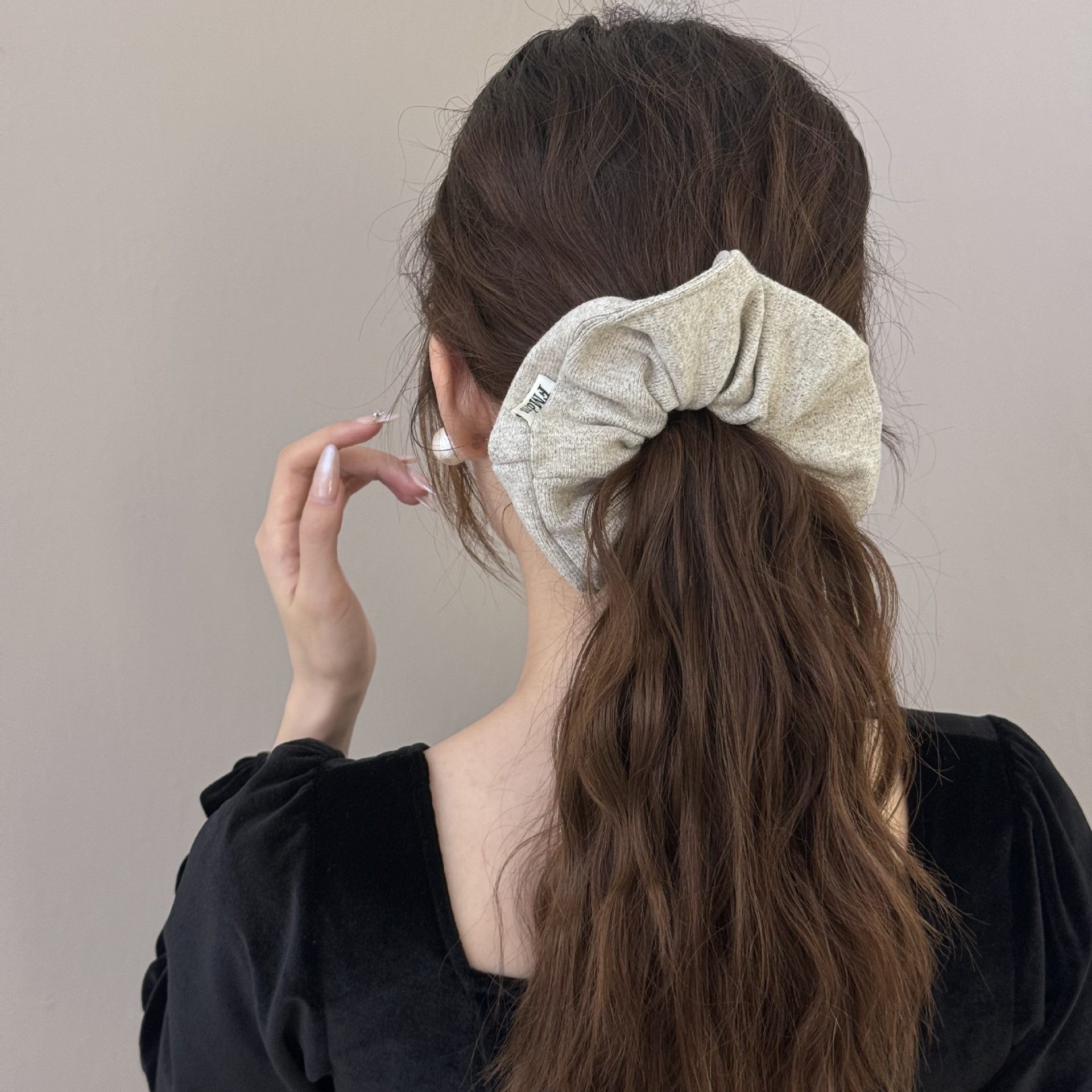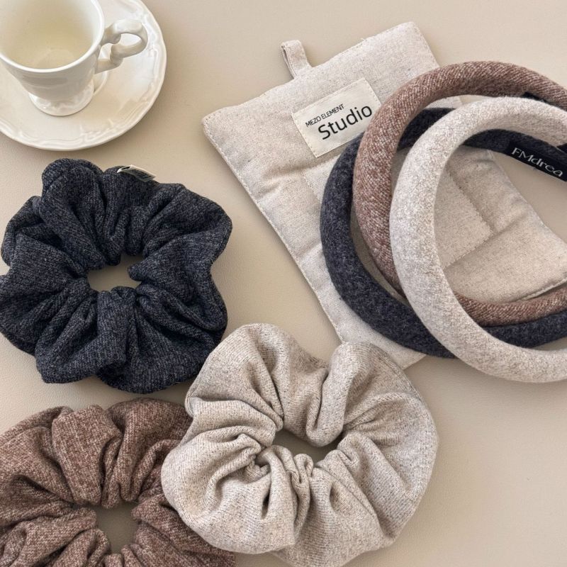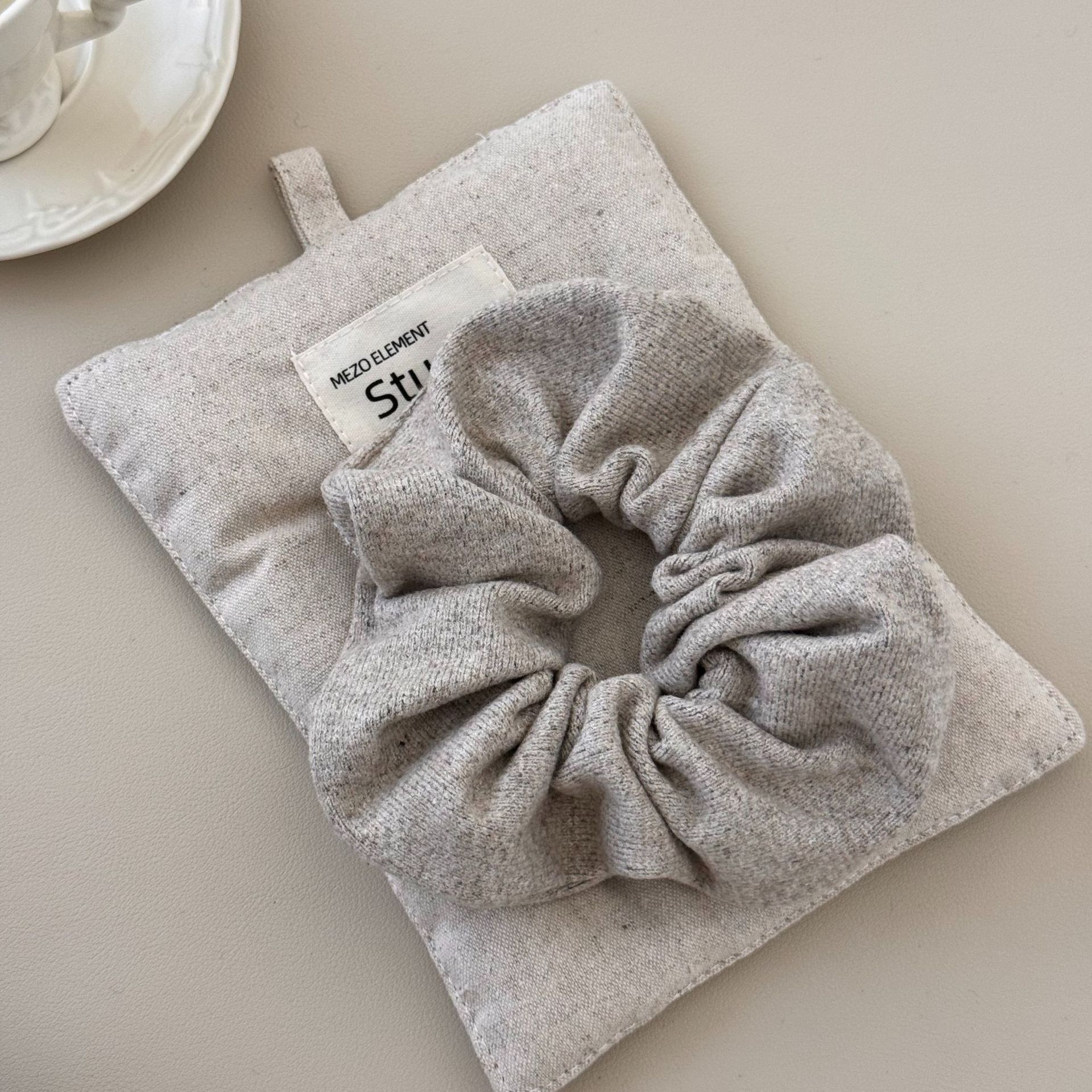 High Sense Oat Gray Texture Woolen Large Intestine Hair Ring