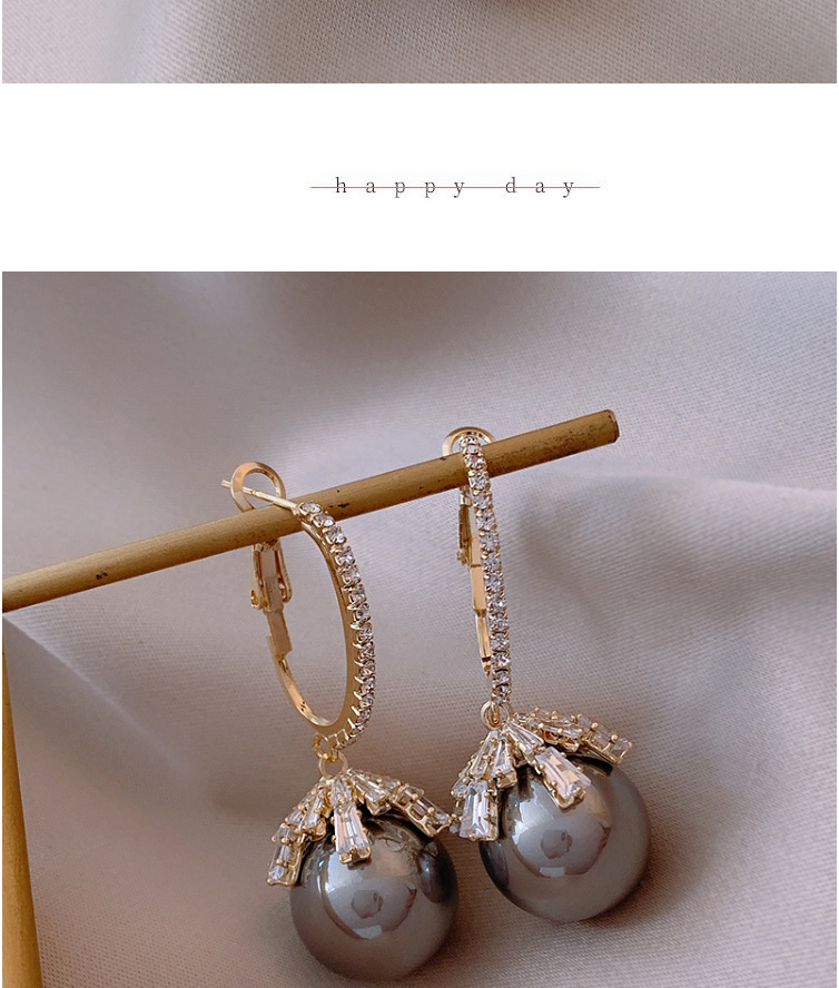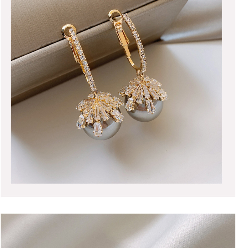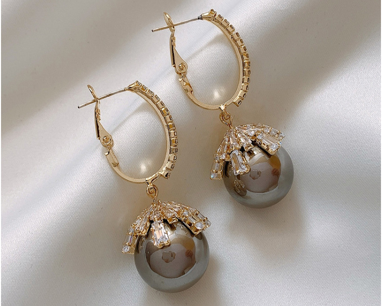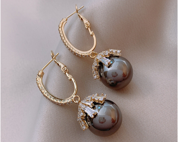 Color: red, champagne pearl zircon earrings, bright gray pearl zircon earrings