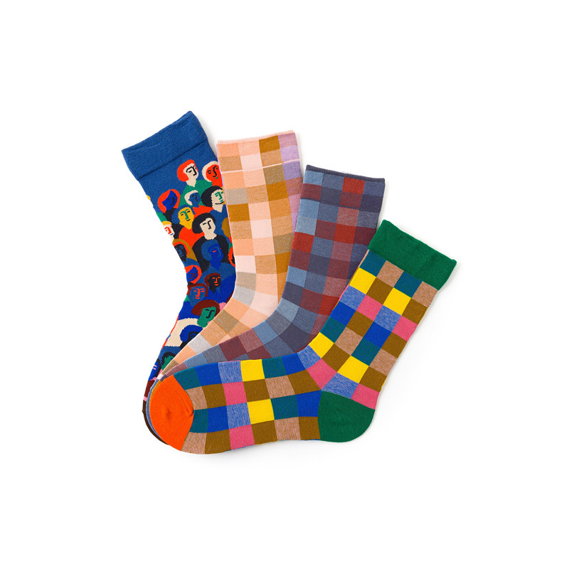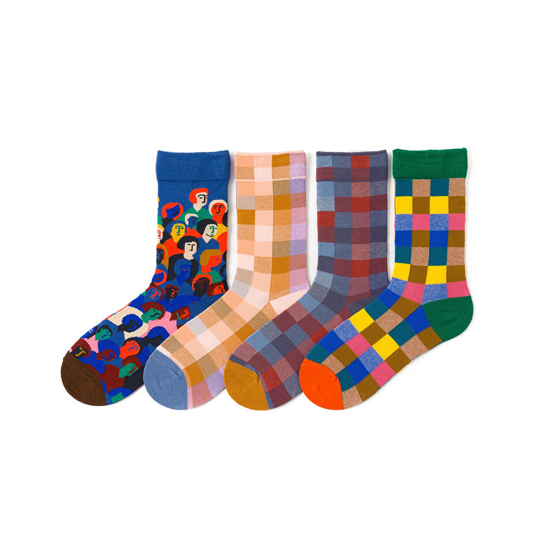Color: color head, rainbow plaid, orange plaid, gray-red plaid