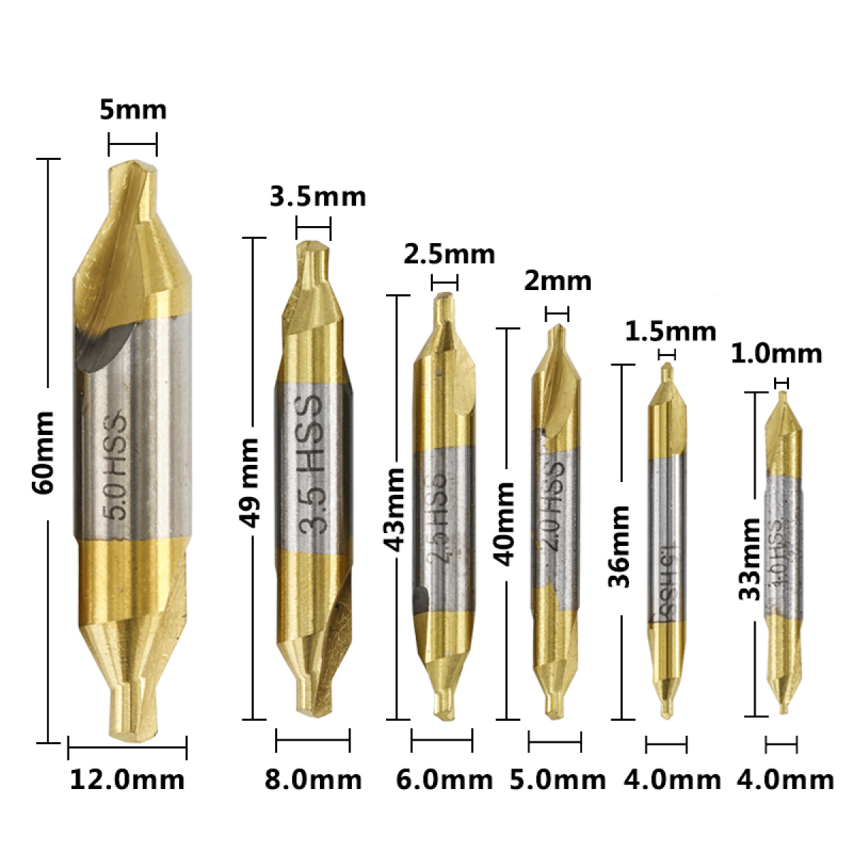 Model: High-speed steel center drill set 1.0 1.5 2 2.5 3.5 5.0 mm