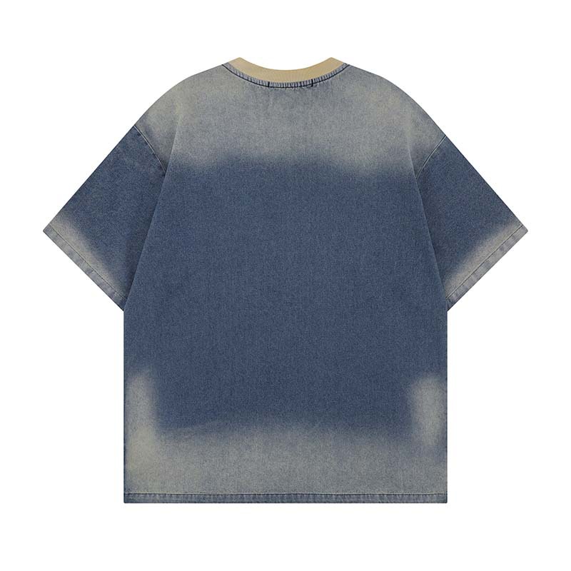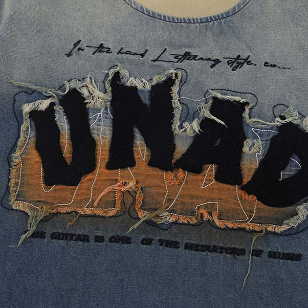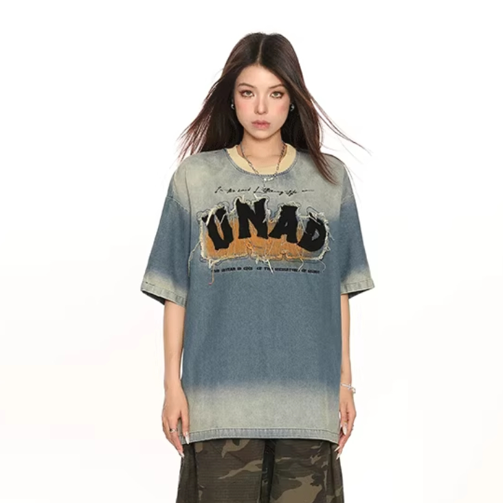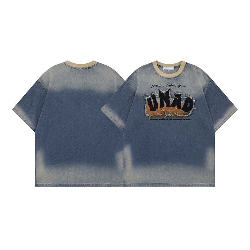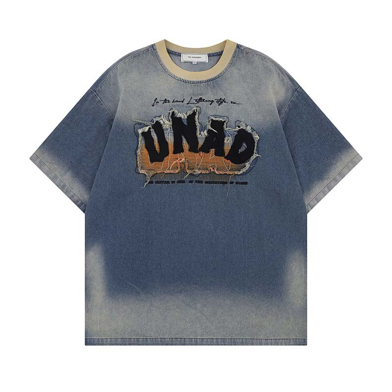 High Street American Letter Flocking Paste Cloth Embroidery Washed Do The Old Cowboy Short Sleeve