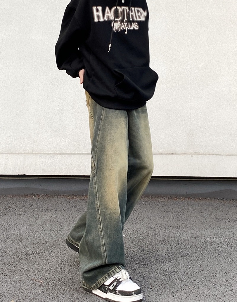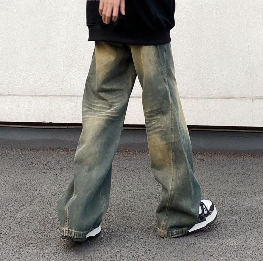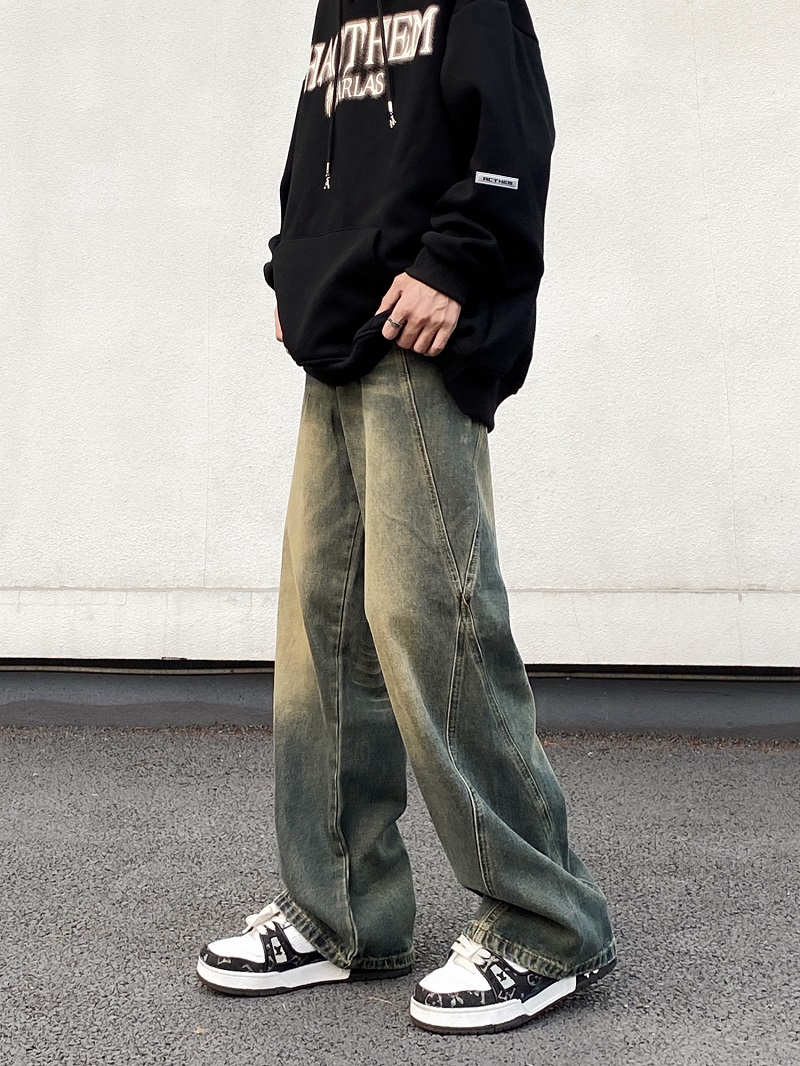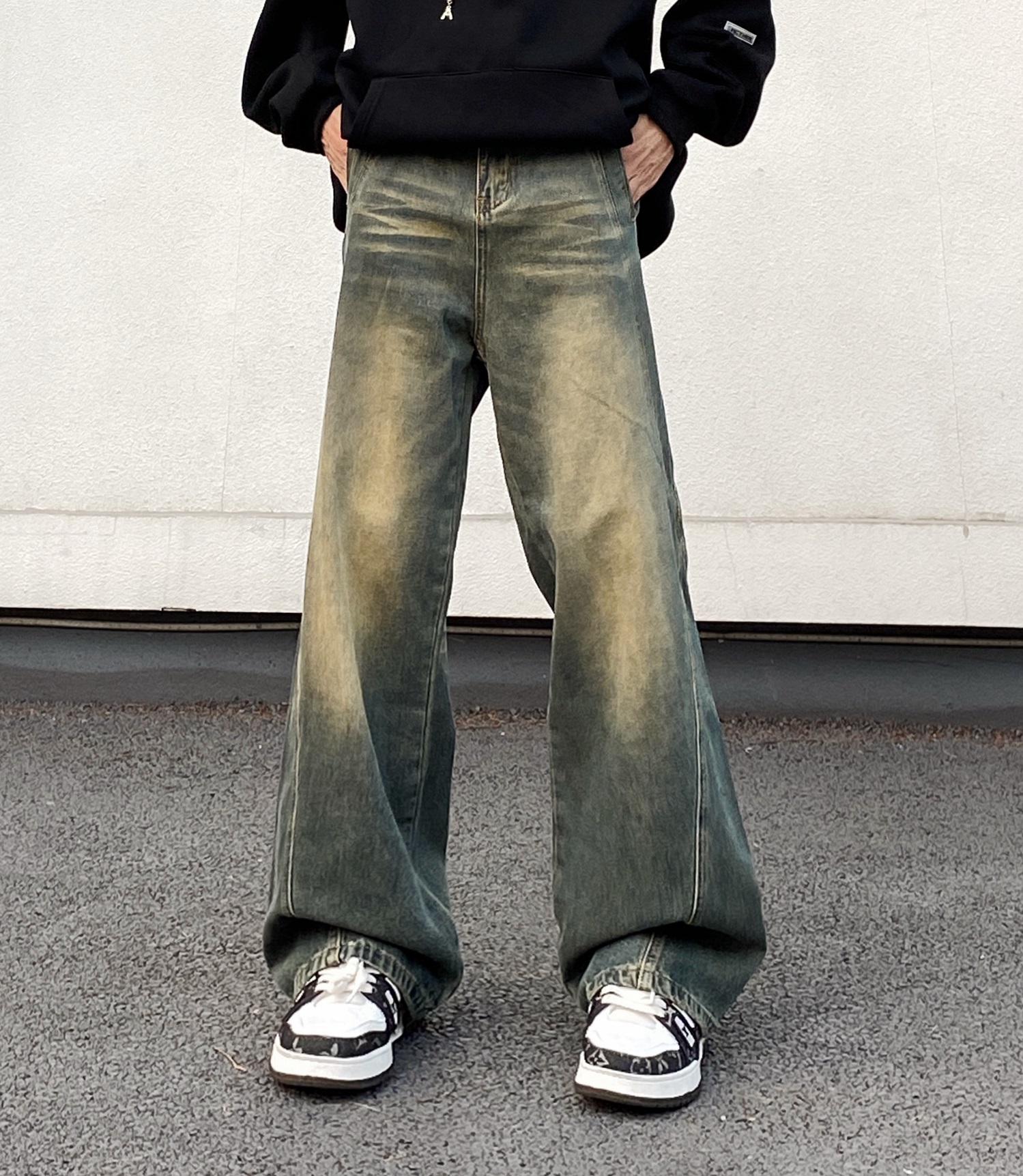 High Street American Retro Washed Distressed Yellow Mud Jeans Men