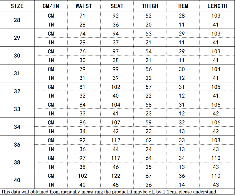Sizes: 28,29,30,31,32,33,34,36,38,40