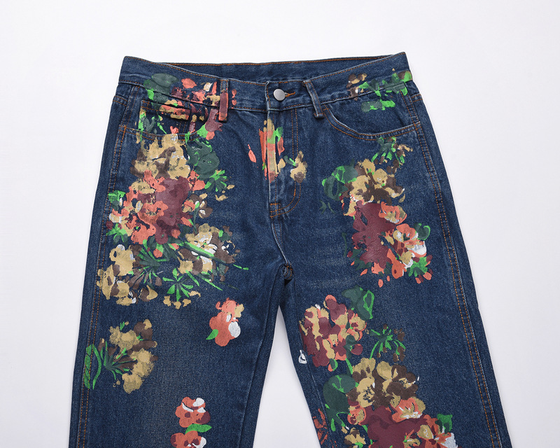 High Street Fashion Brand Ink Splash Print Grey Pattern Jeans
