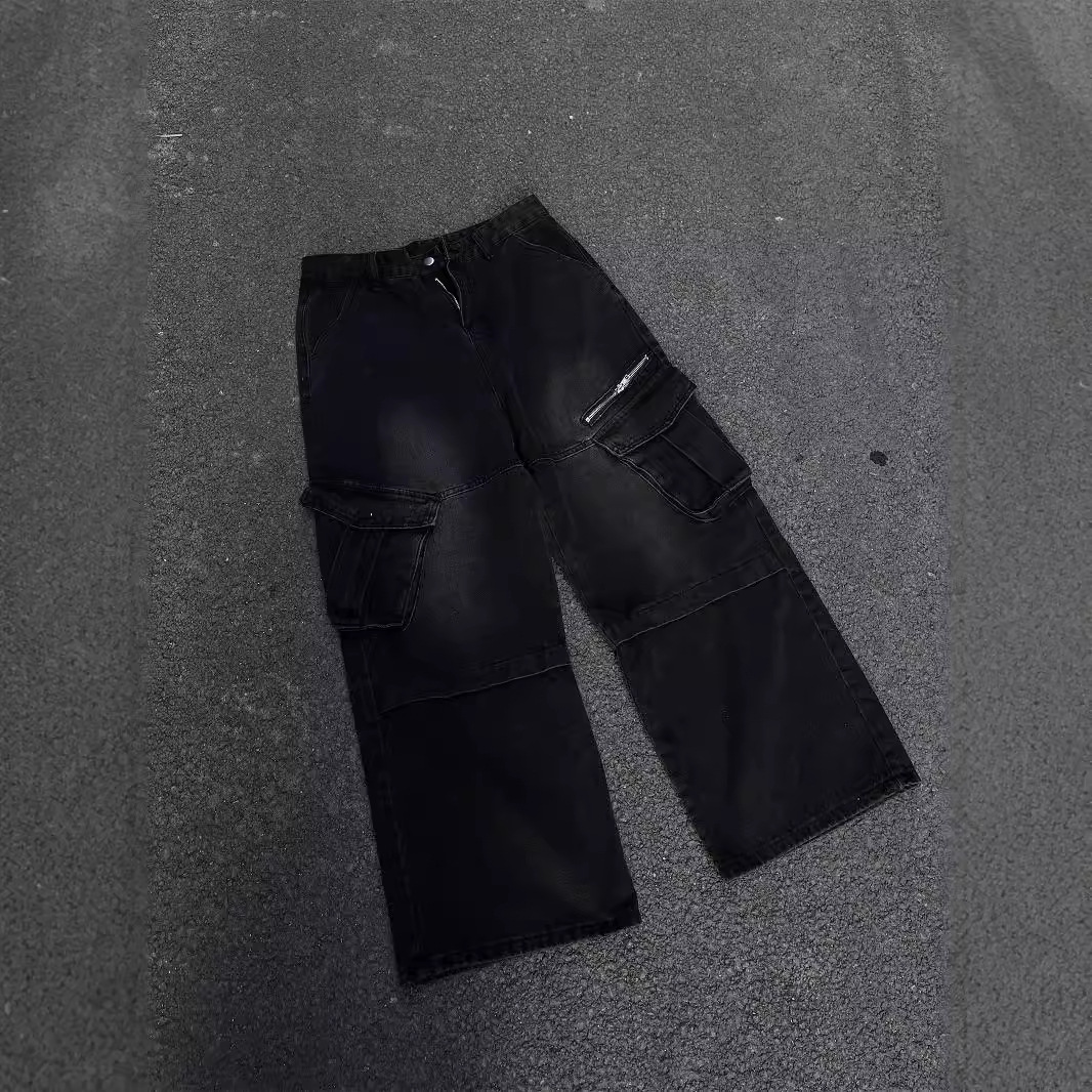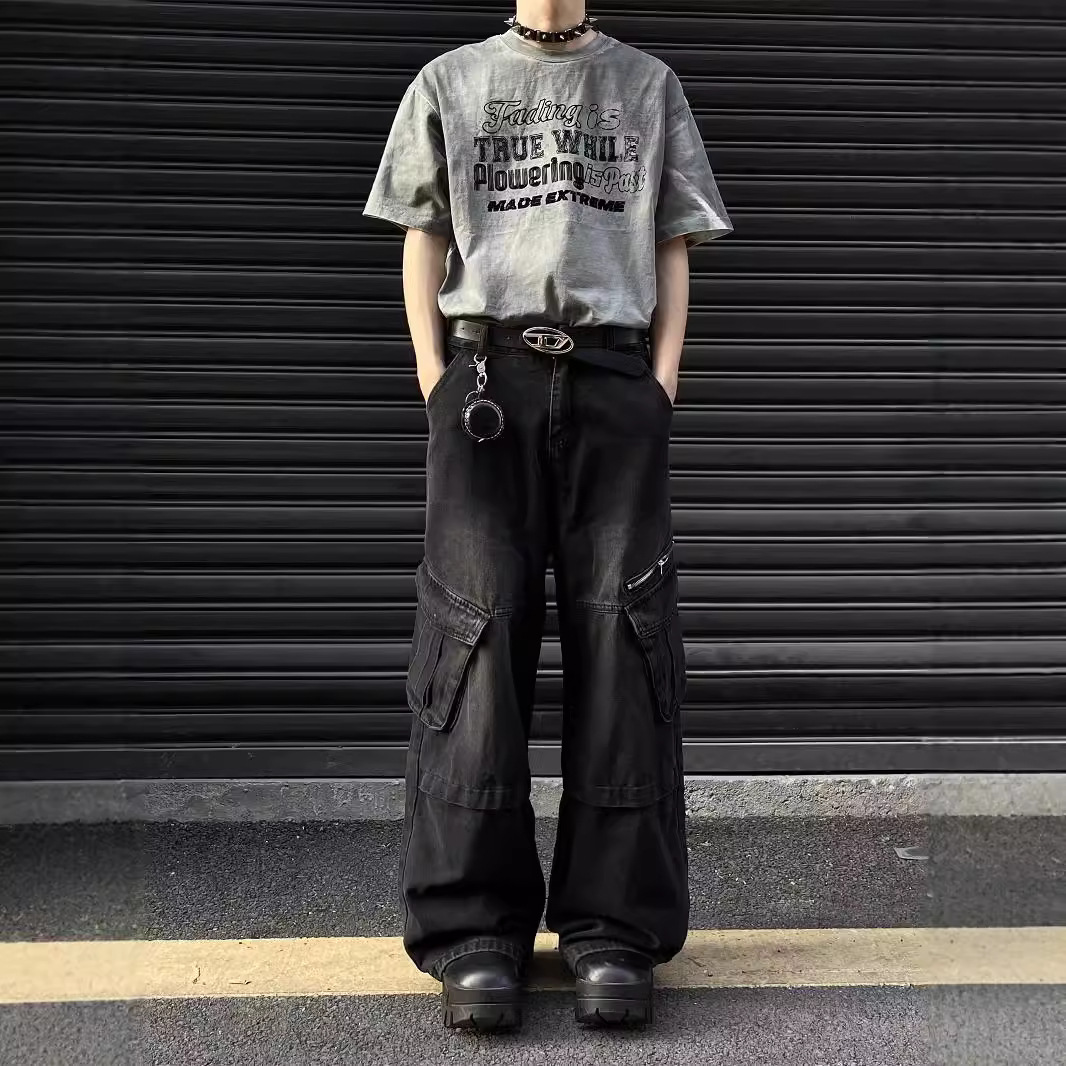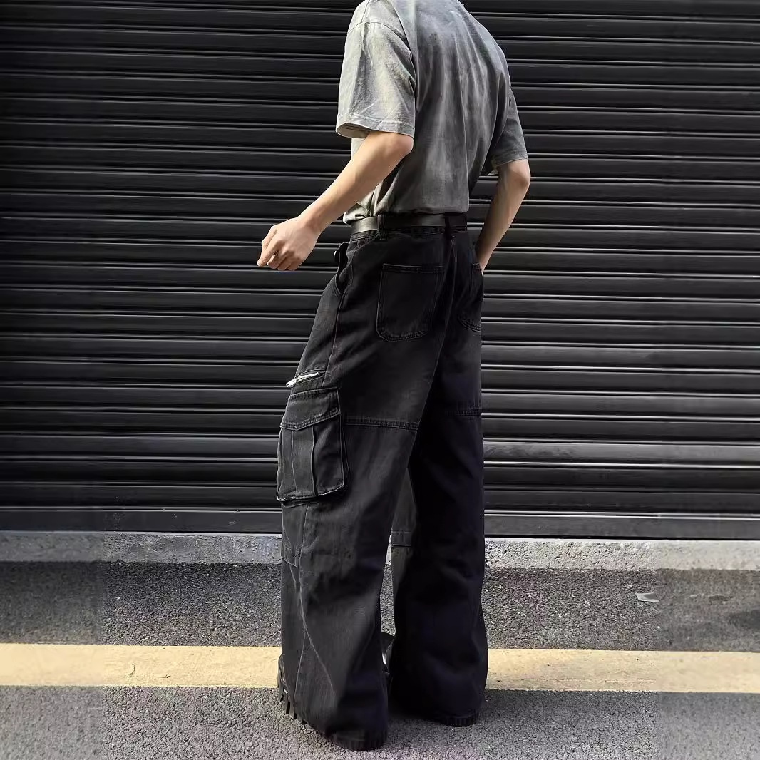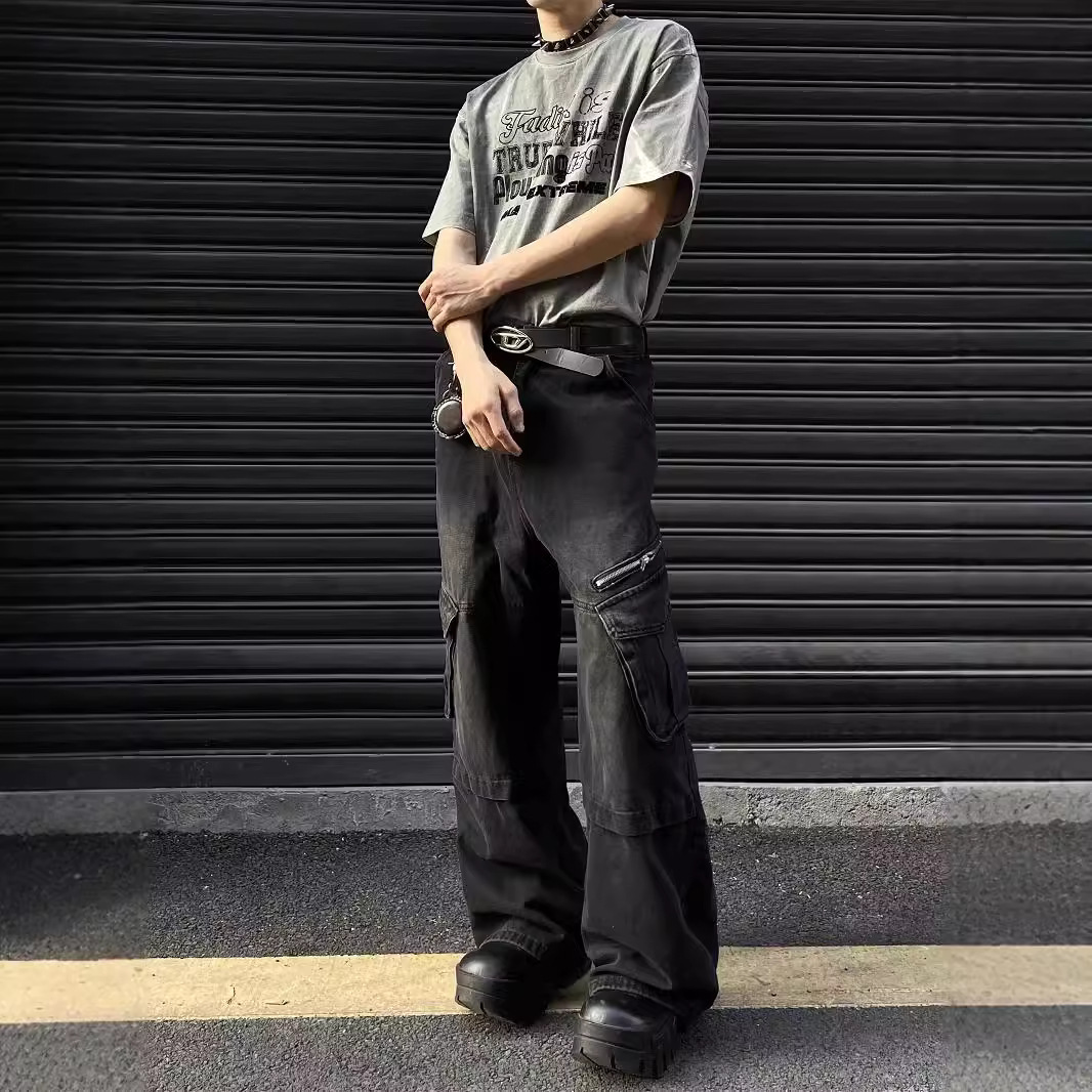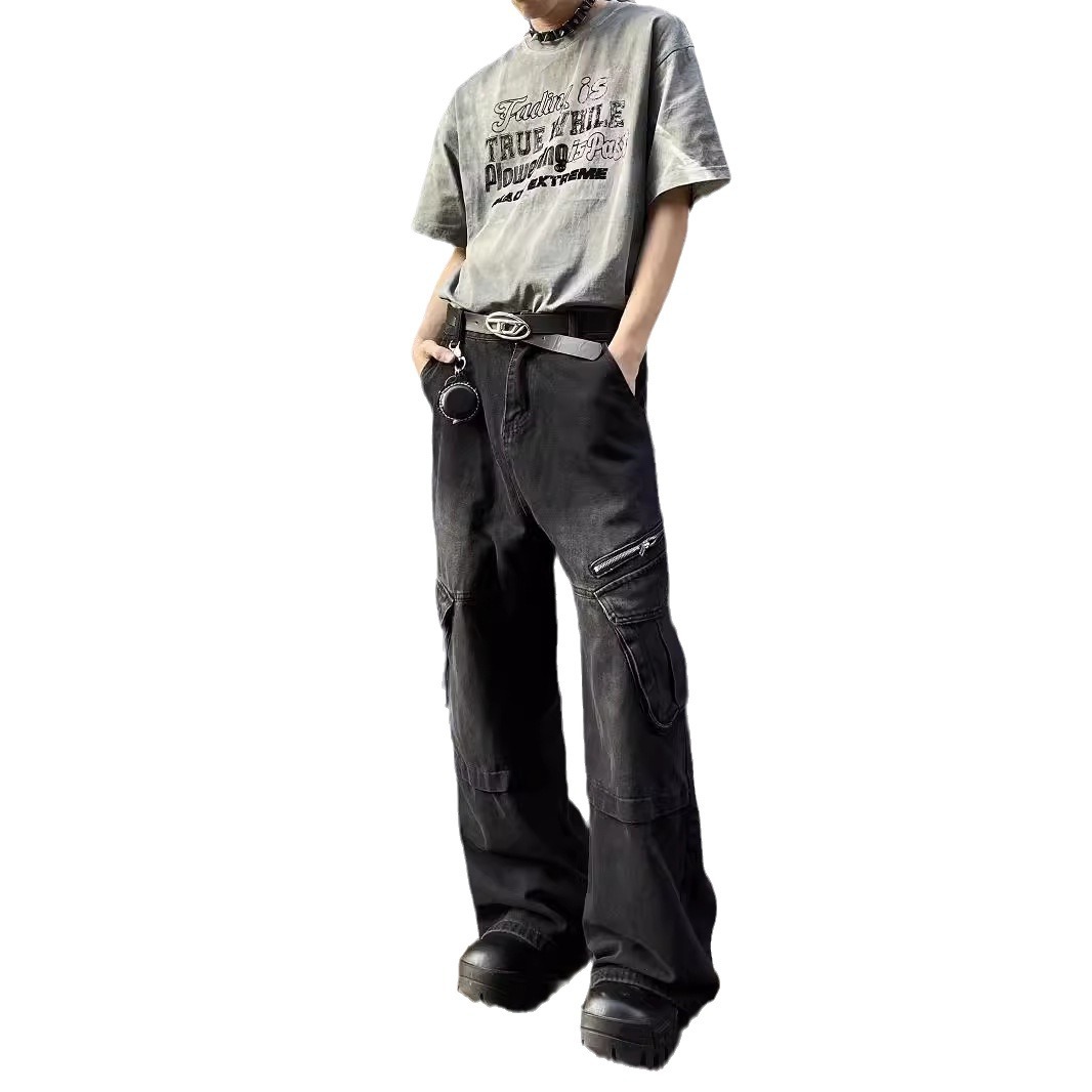 High Street Fashion Brand Zipper Large Workwear With Pocket Jeans Men