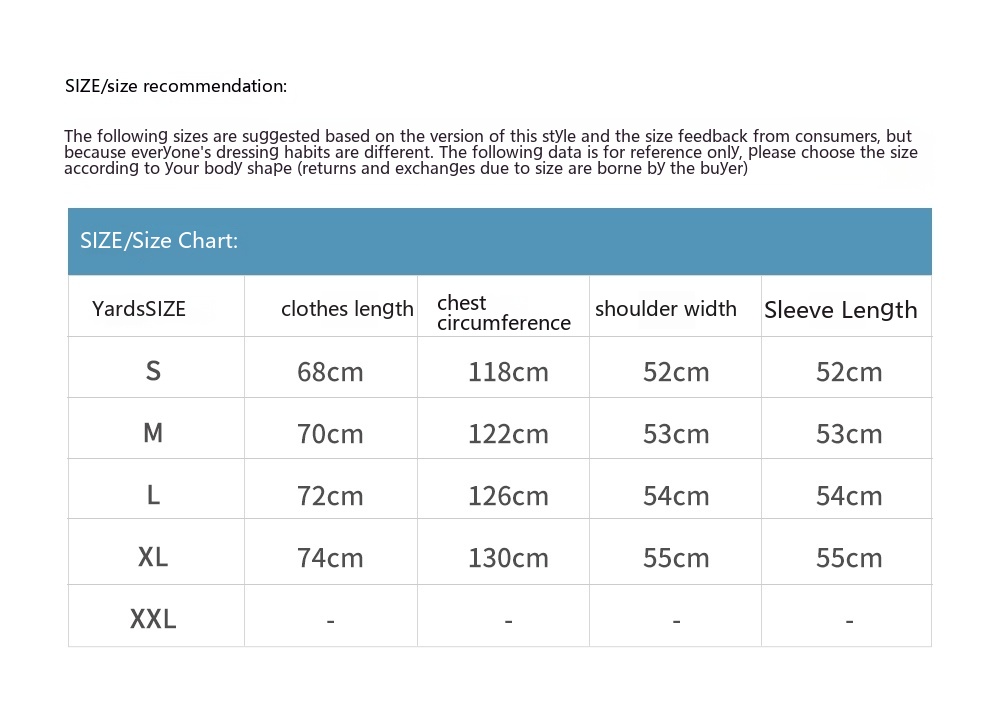1. Asian sizes are 1 to 2 sizes smaller than European and American people. Choose the larger size if your size between two sizes. Please allow 2-3cm differences due to manual measurement. 2. Please check the size chart carefully before you buy the item, if you don't know how to choose size, please contact our customer service. 3.As you know, the different computers display colors differently, the color of the actual item may vary slightly from the following images.