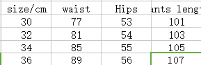 Size: 30 32 34 36