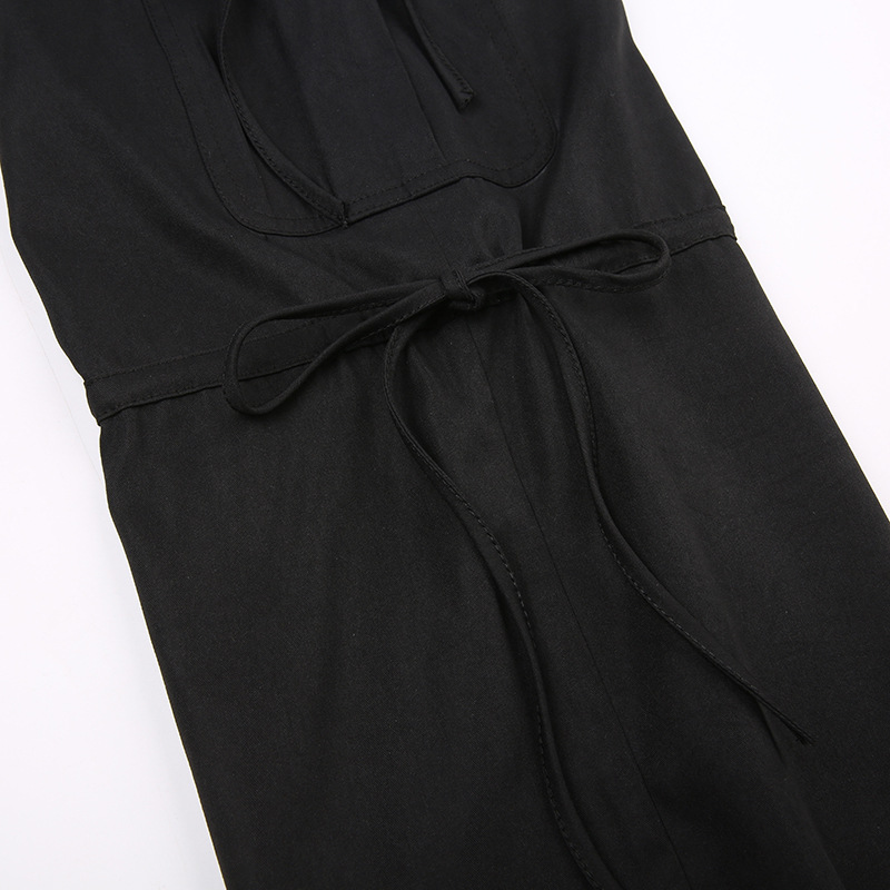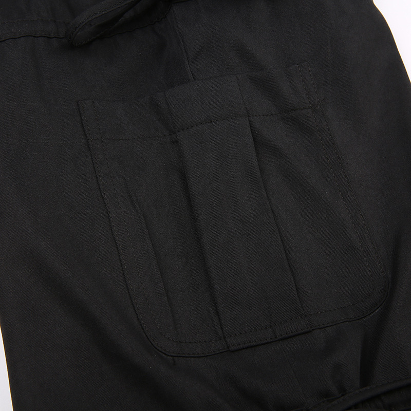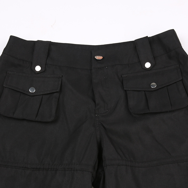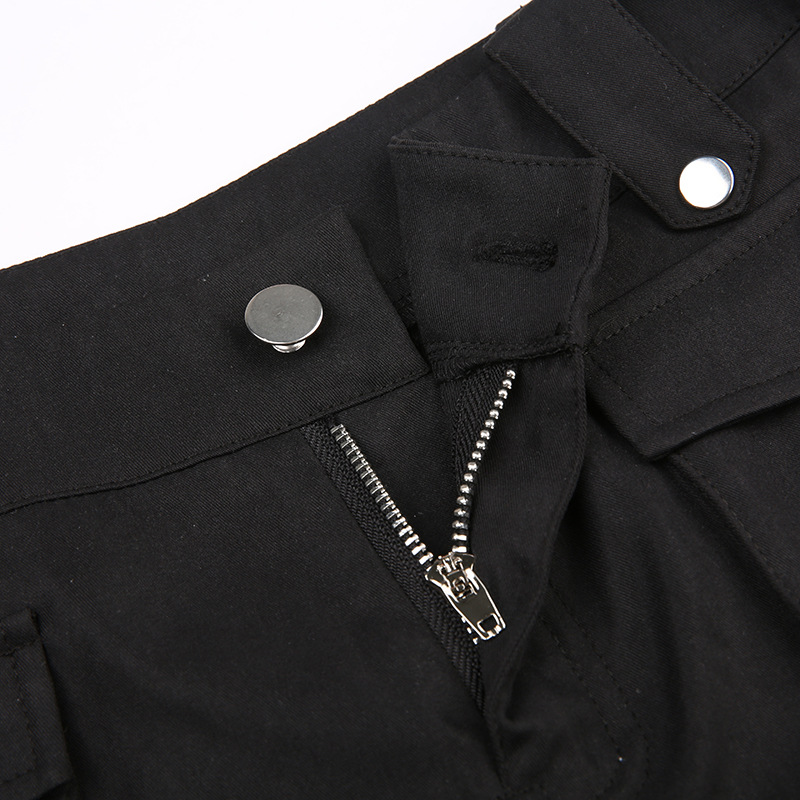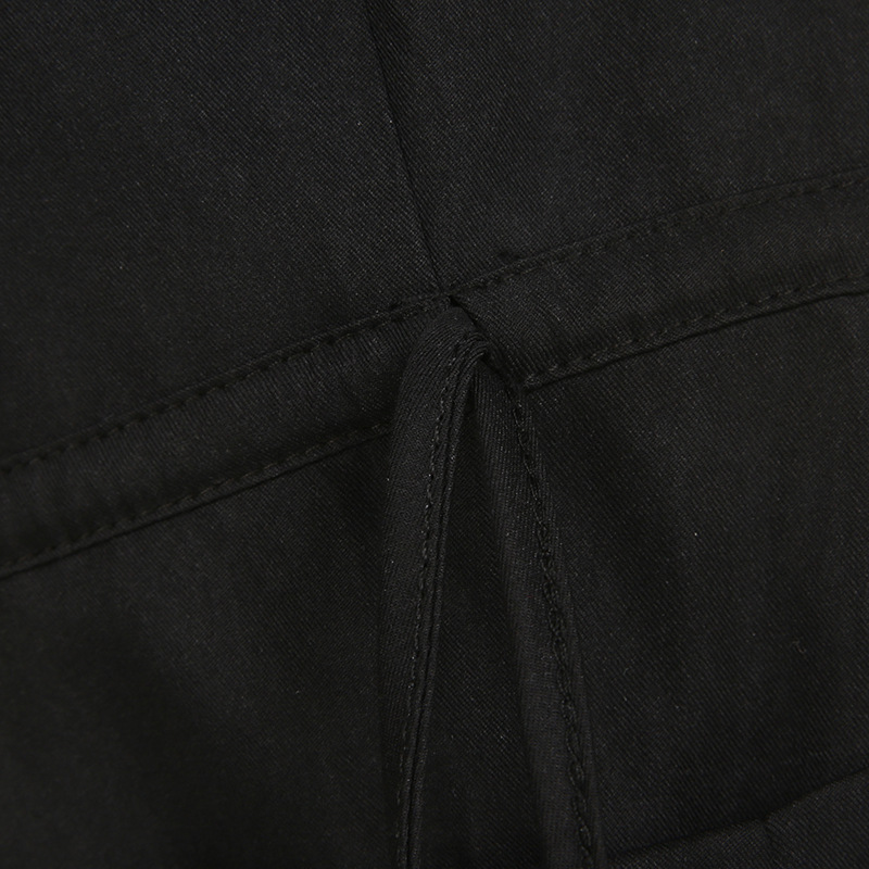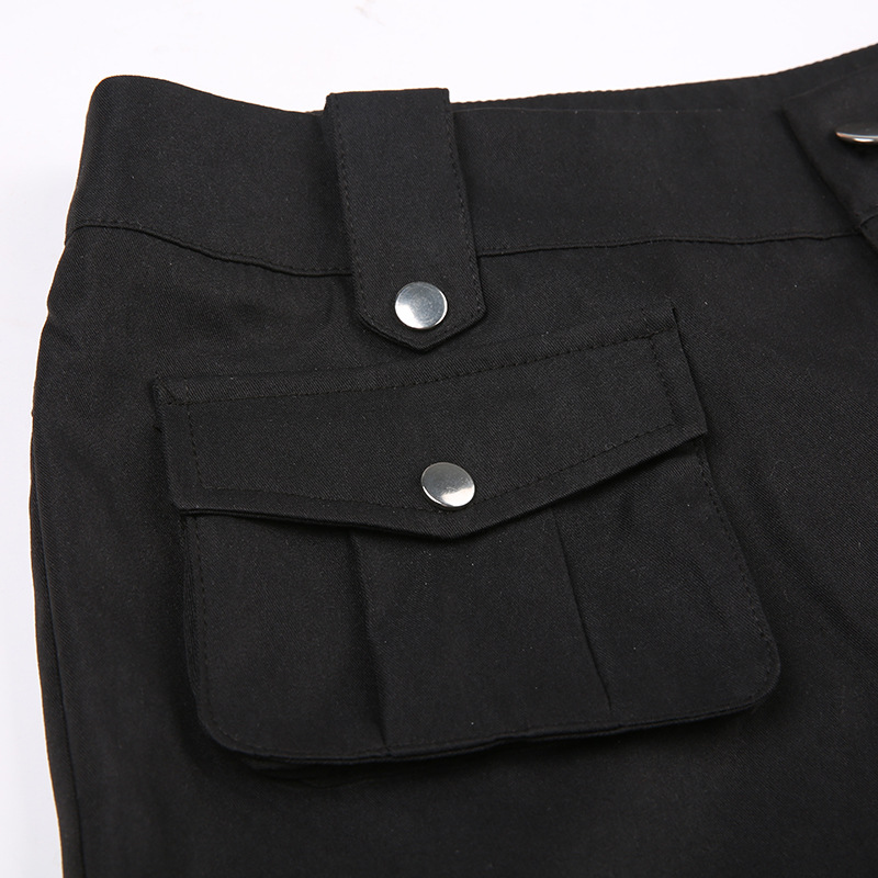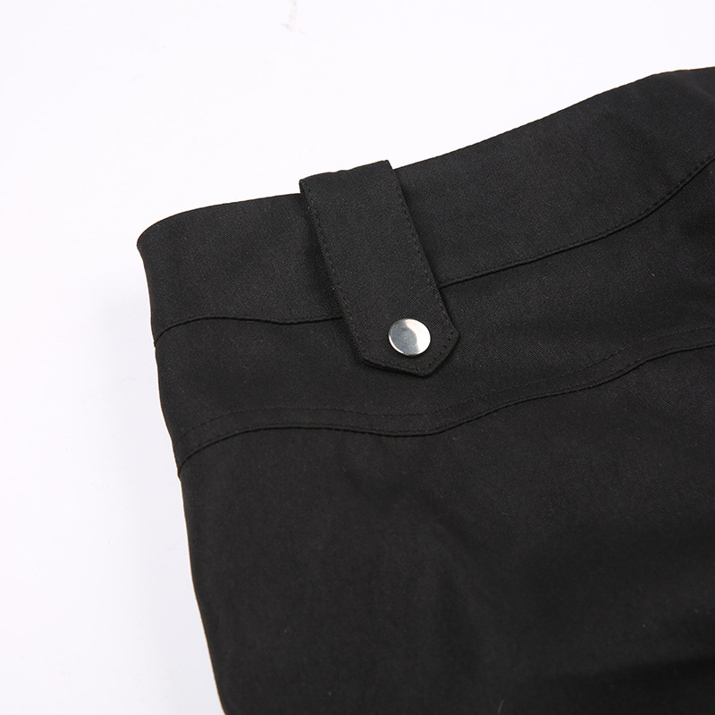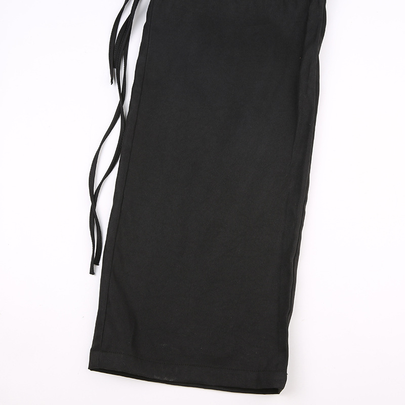 High Street Pocket Ribbon Stitching Straight Black Woven Pants