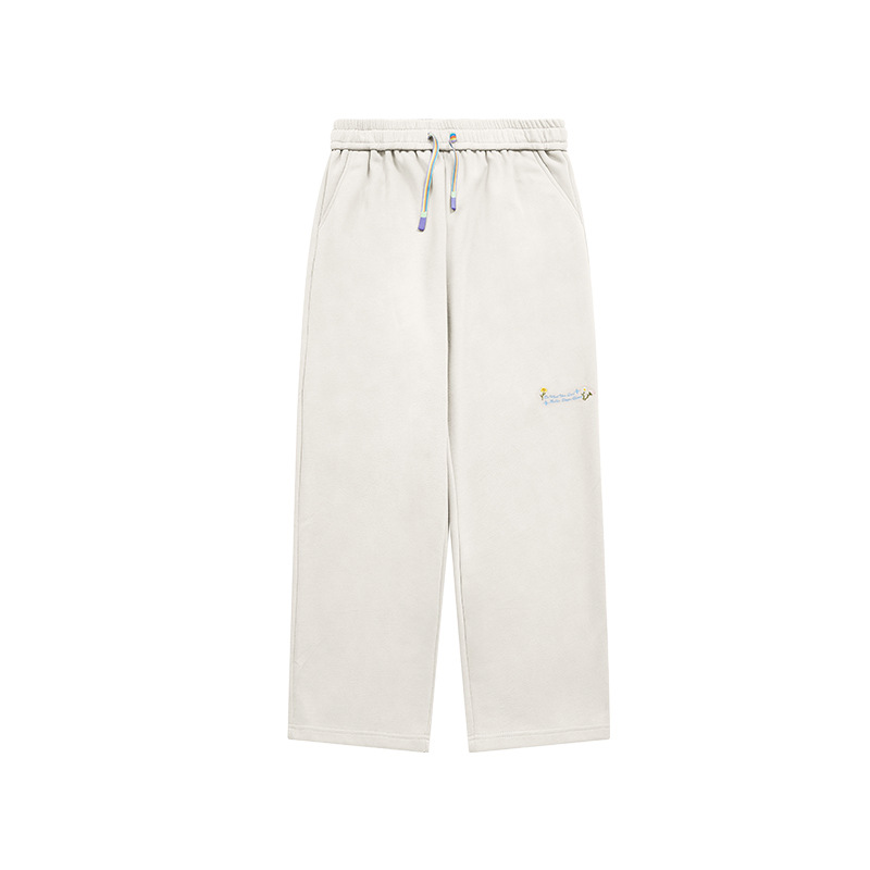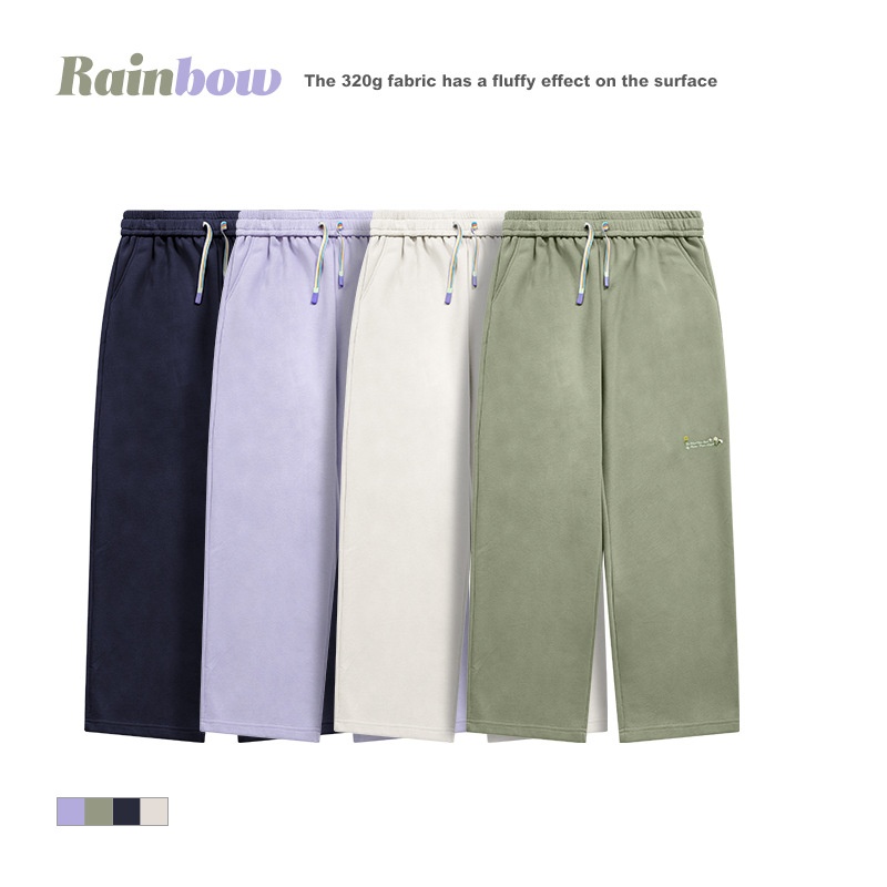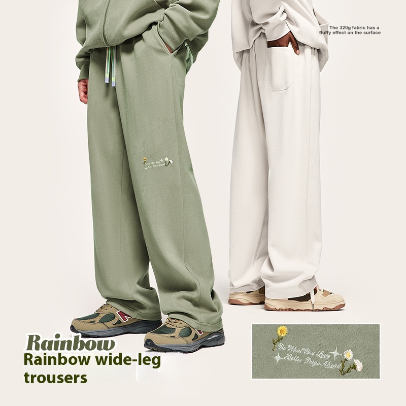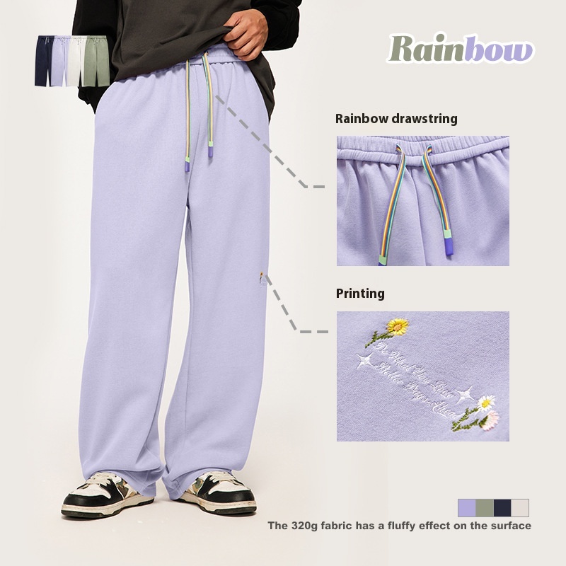 High Street Rainbow Drawstring Loose Sanding Embroidered Wide-leg Pants