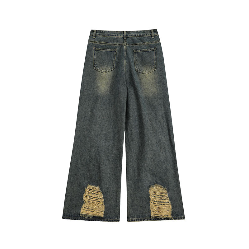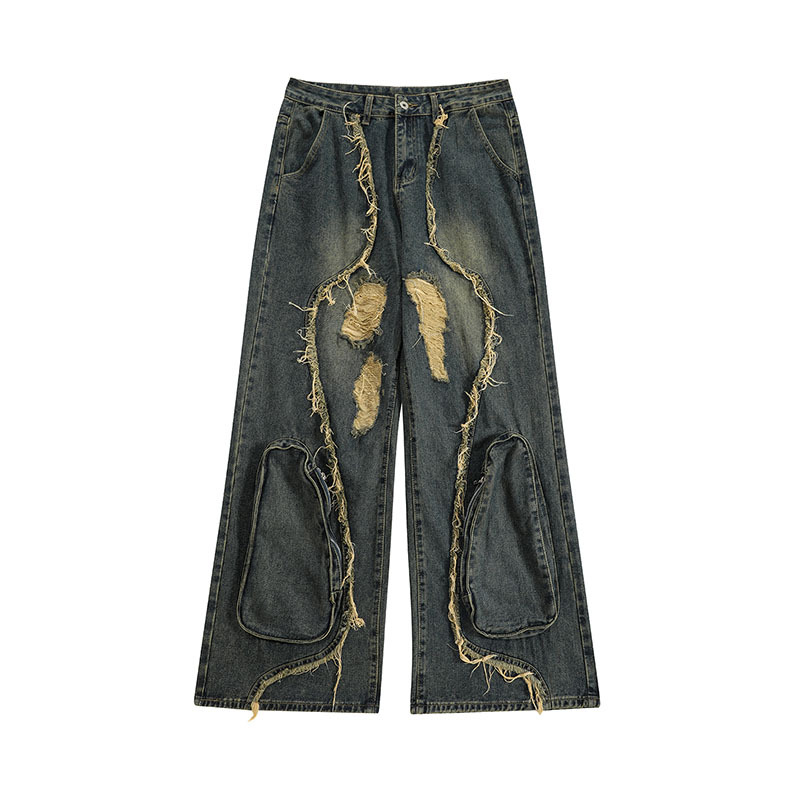 High Street Re-niche Deconstruction Tassel Hole Denim Men's Pants