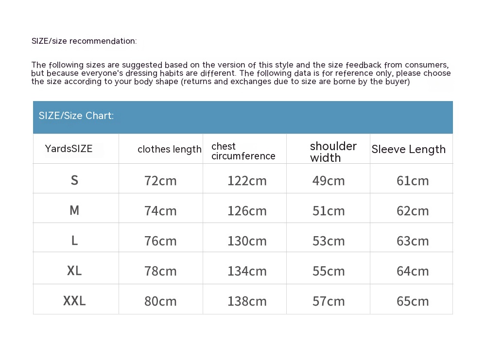 1. Asian sizes are 1 to 2 sizes smaller than European and American people. Choose the larger size if your size between two sizes. Please allow 2-3cm differences due to manual measurement. 2. Please check the size chart carefully before you buy the item, if you don't know how to choose size, please contact our customer service. 3.As you know, the different computers display colors differently, the color of the actual item may vary slightly from the following images.