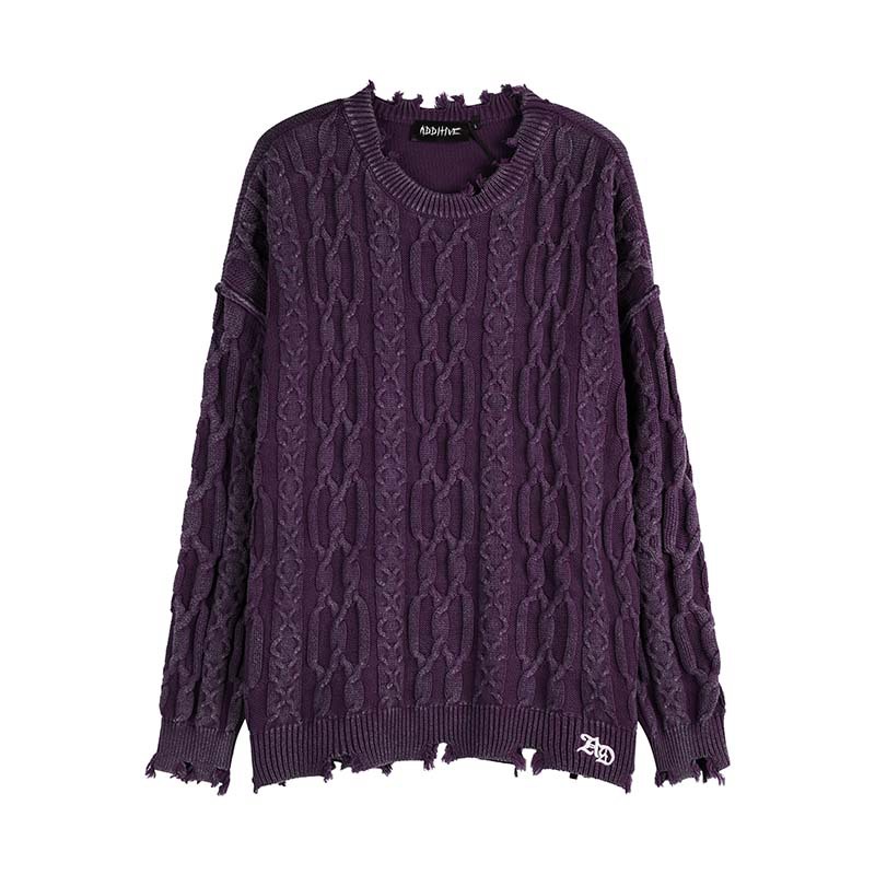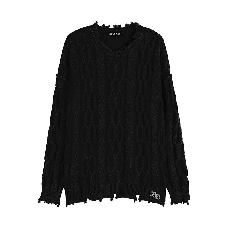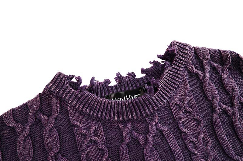 High Street Vintage Braided Twist Tattered Raw Edge Sweater