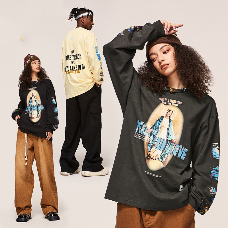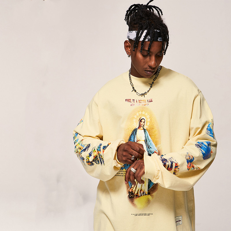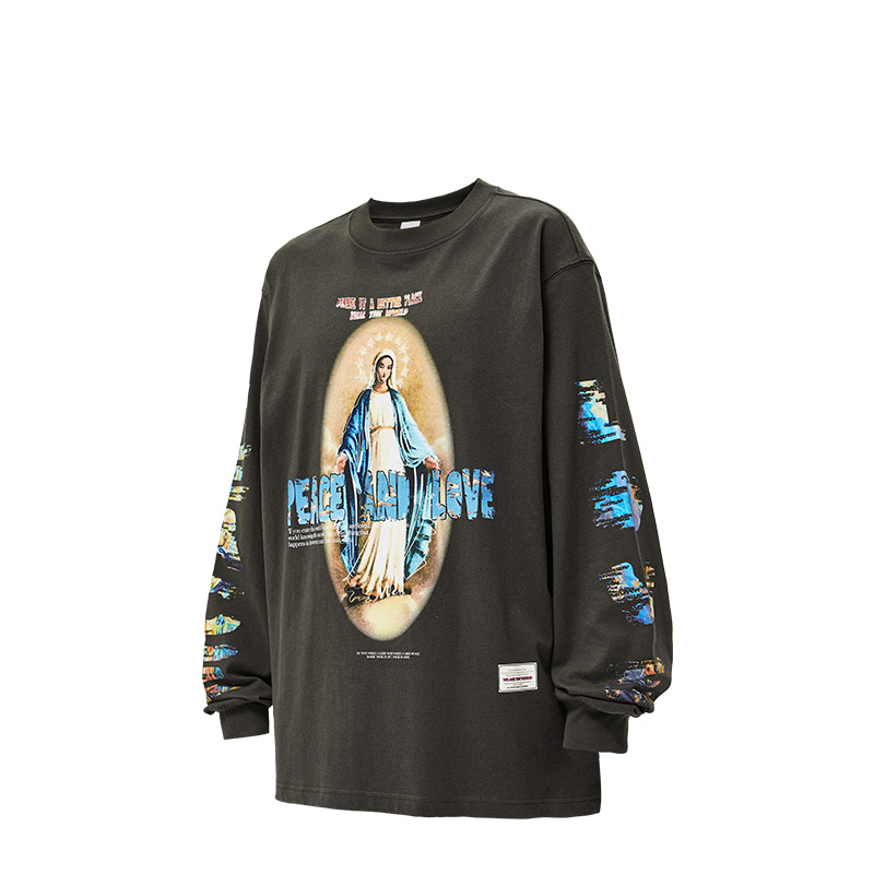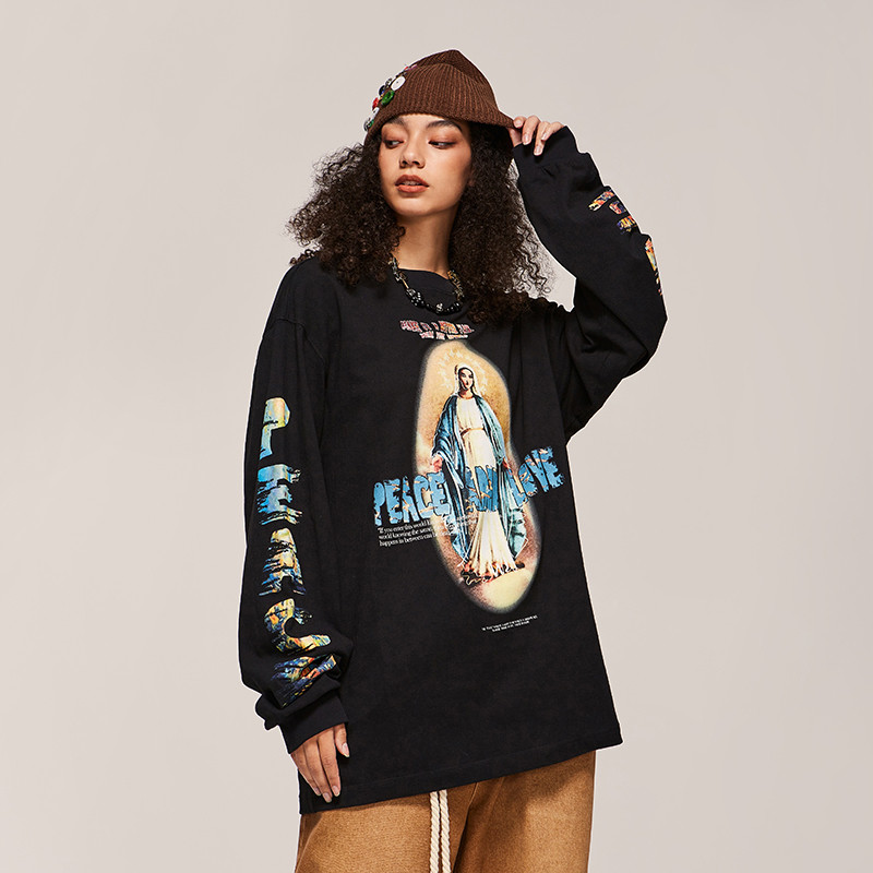 High Street Vintage Print Design Spring New Round Neck Sweater
