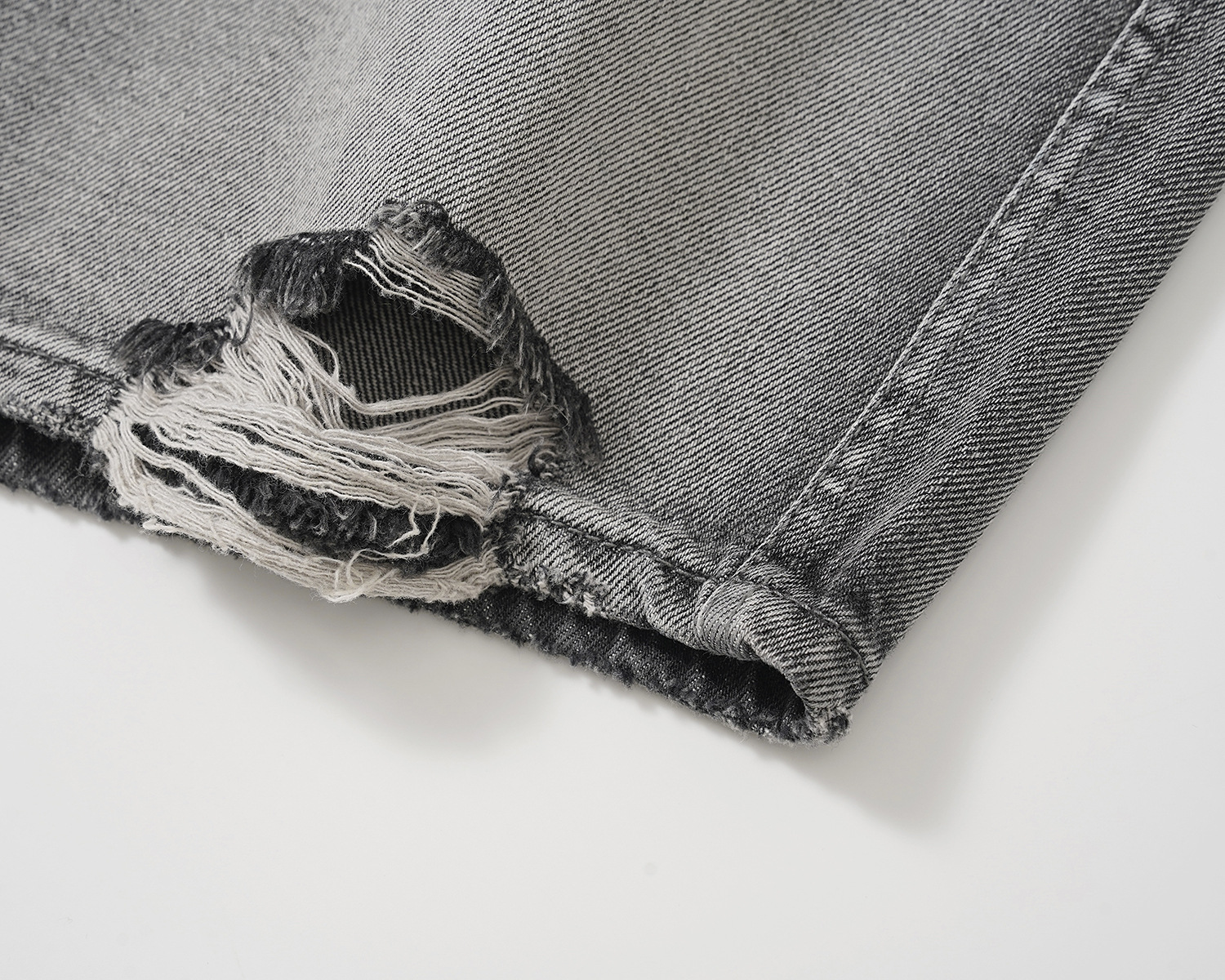 High Street Washed Denim Hole With Cat Whisker Brushed Shorts