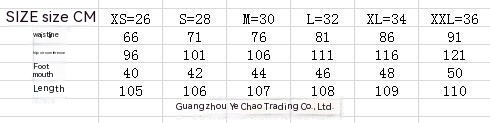 Size: XS = 26,S = 28,30 = M,32 = L,34 = XL,36 = XXL