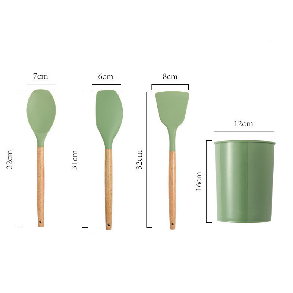 Food clip X1PCS Egg beater X1PCS Oil brush X1PCS Noodle scoop X1PCS Scraper X1PCS Scraper X1PCS Spatula X1PCS Small spoon X1PCS Slotted spoon X1PCS Spoon X1PCS Missing shovel X1PCS Storage bucket X1PCS