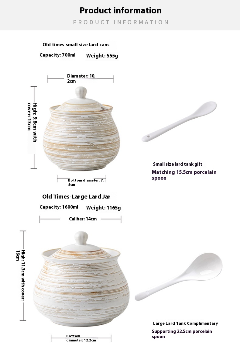 Color: Old Time-700ml lard jar, old time-1600ml lard jar