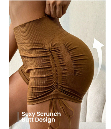 High Top Sports Yoga Pants Casual Fitness Tight Stretch Peach Hip Yoga Shorts