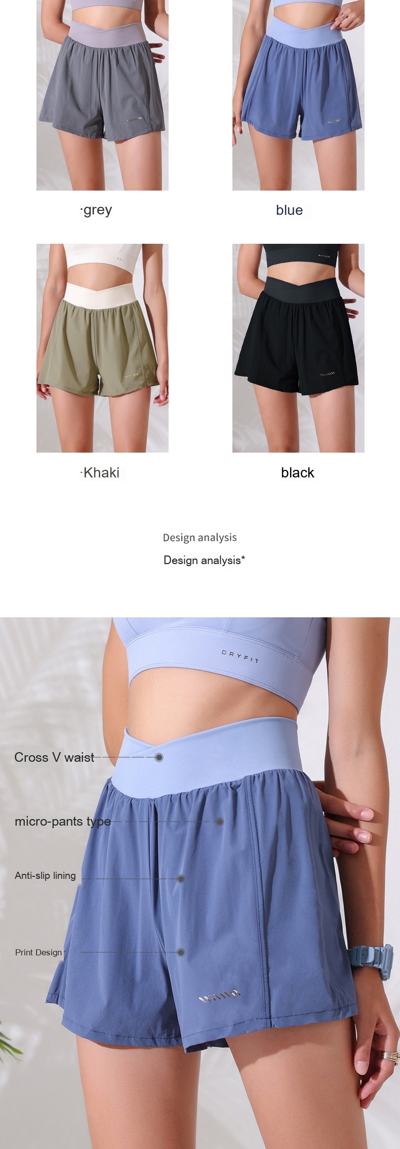 Color: blue, khaki, black, gray