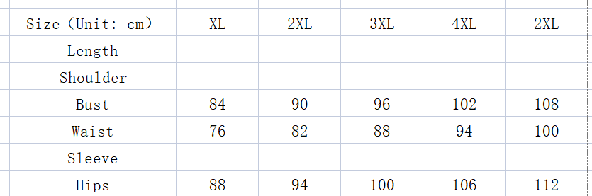 Size: 1XL,2XL,3XL,4XL