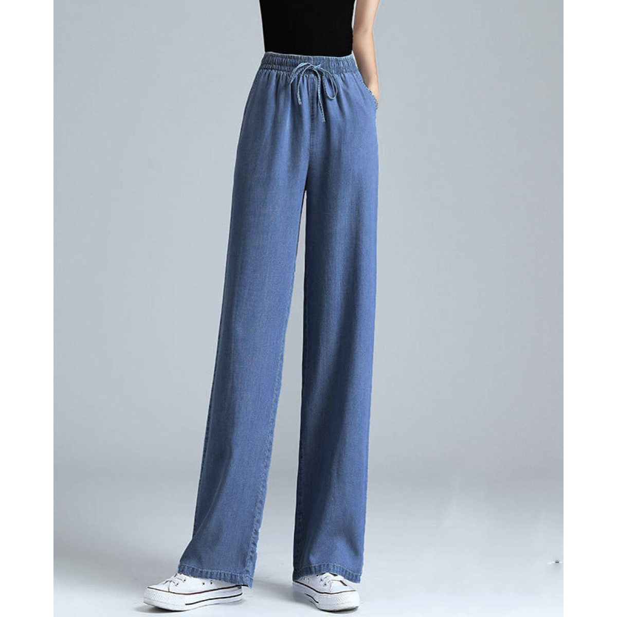 Tencel regular [elastic waist] no back pockets-light retro blue, Tencel regular [elastic waist] no back pockets-dark retro blue