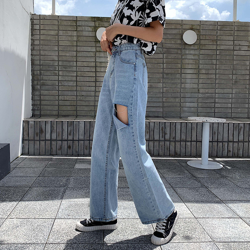 High Waist Hole Loose Net Red Pendant Straight Wide Leg Pants Mopping Pants Autumn Style