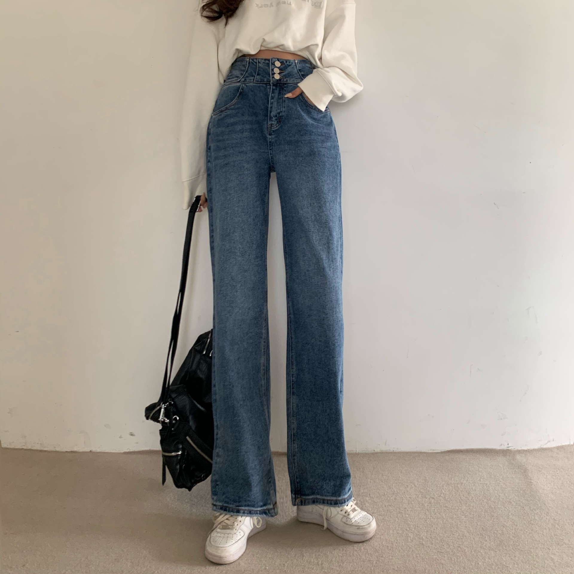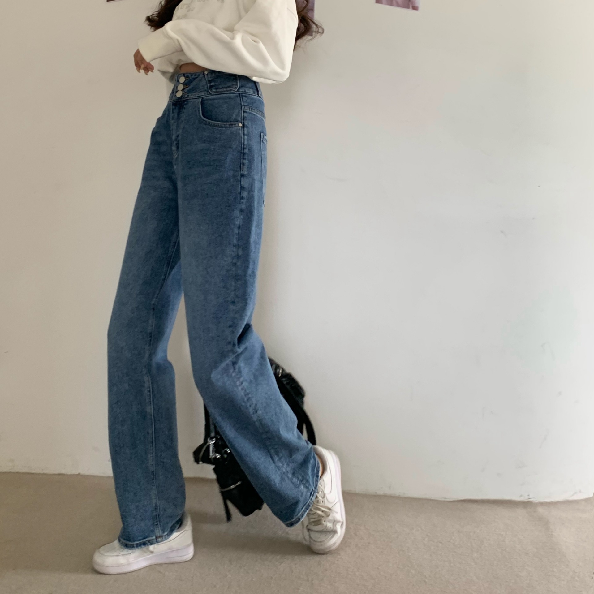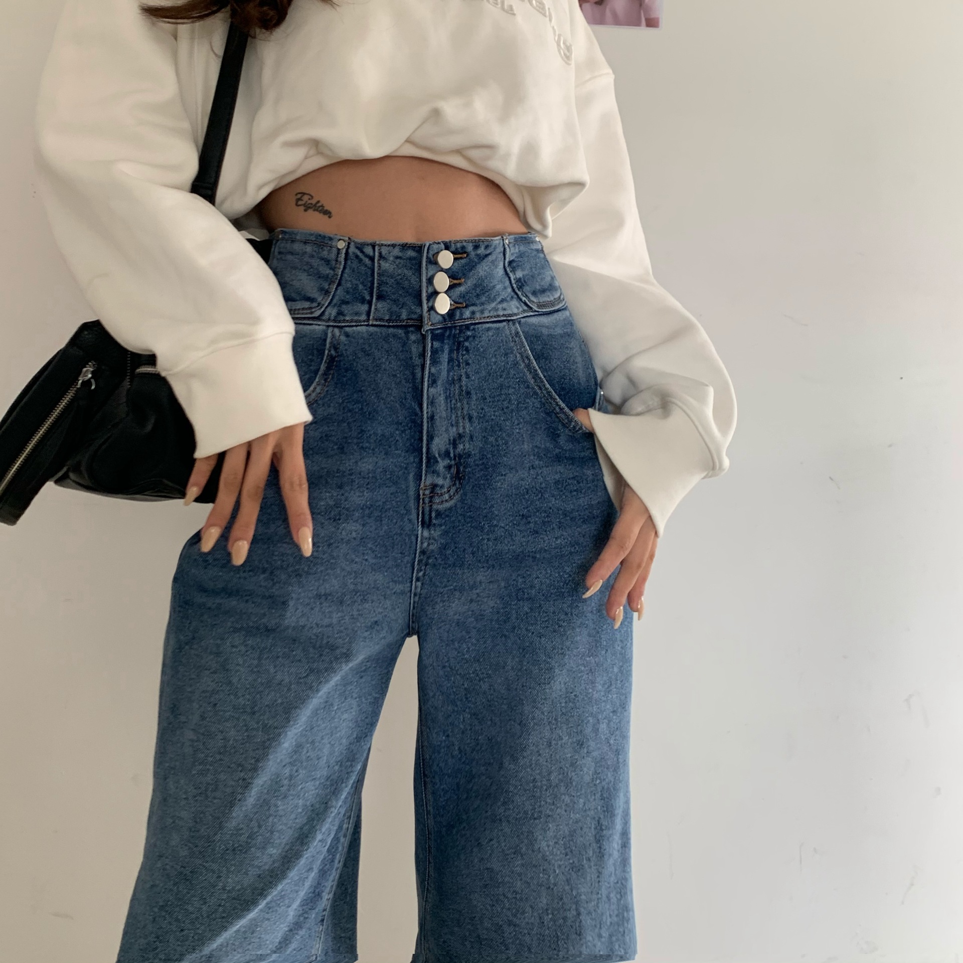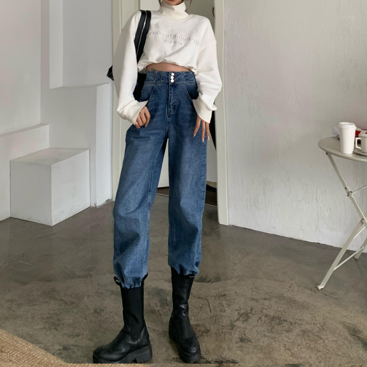 Features: high waist, washed, distressed
