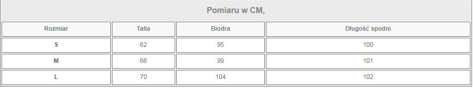 Size Information: