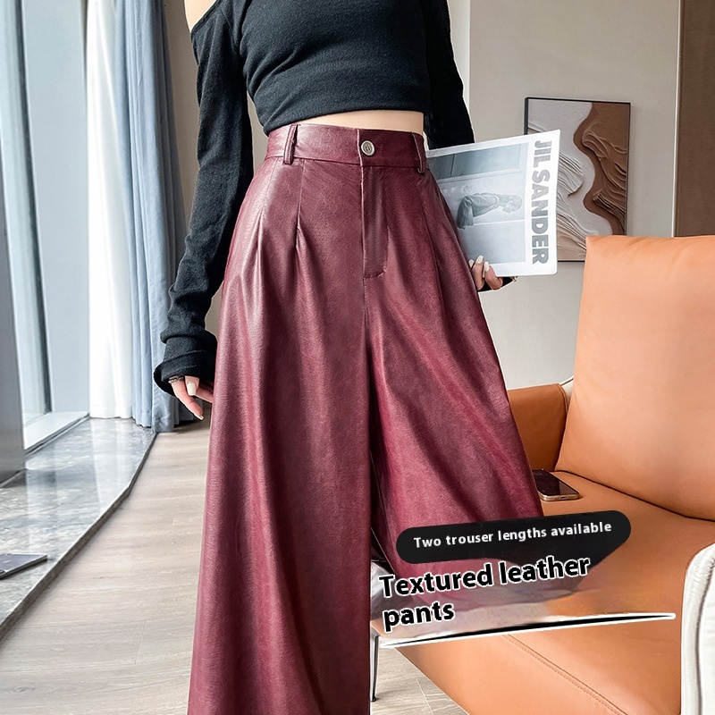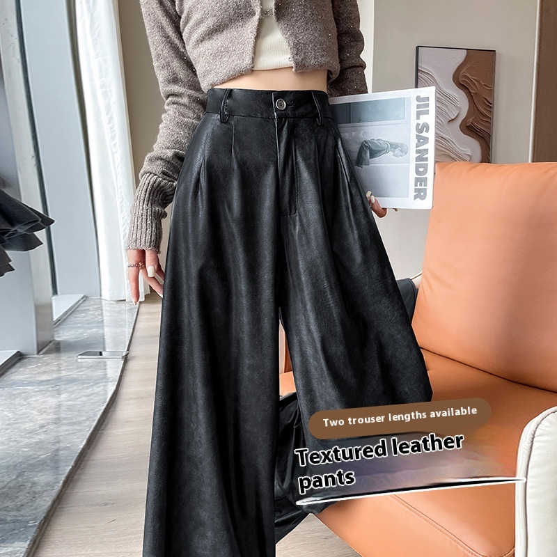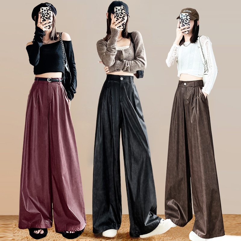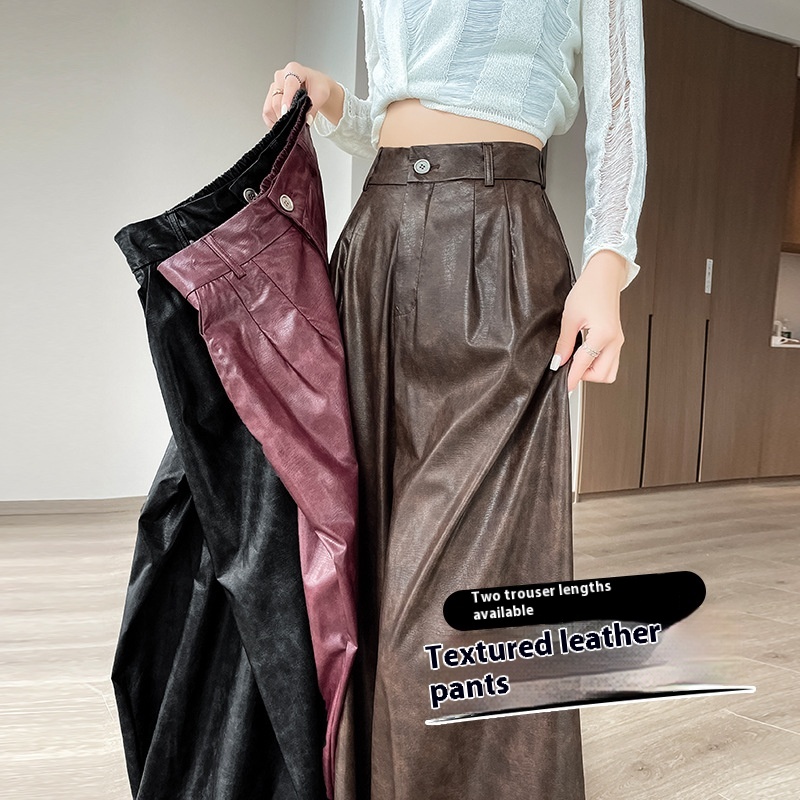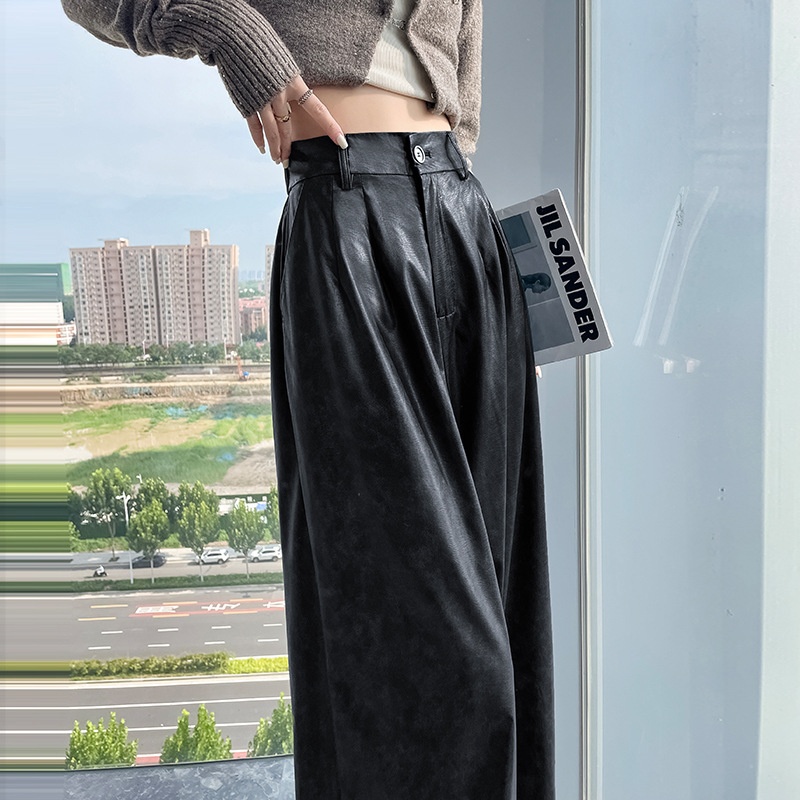 High Waist Loose Straight Slimming Leather Wide-leg Pants Drape Mop Pants