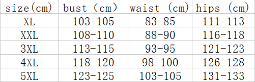 Size: XL, 2XL, 3XL, 4XL, 5XL