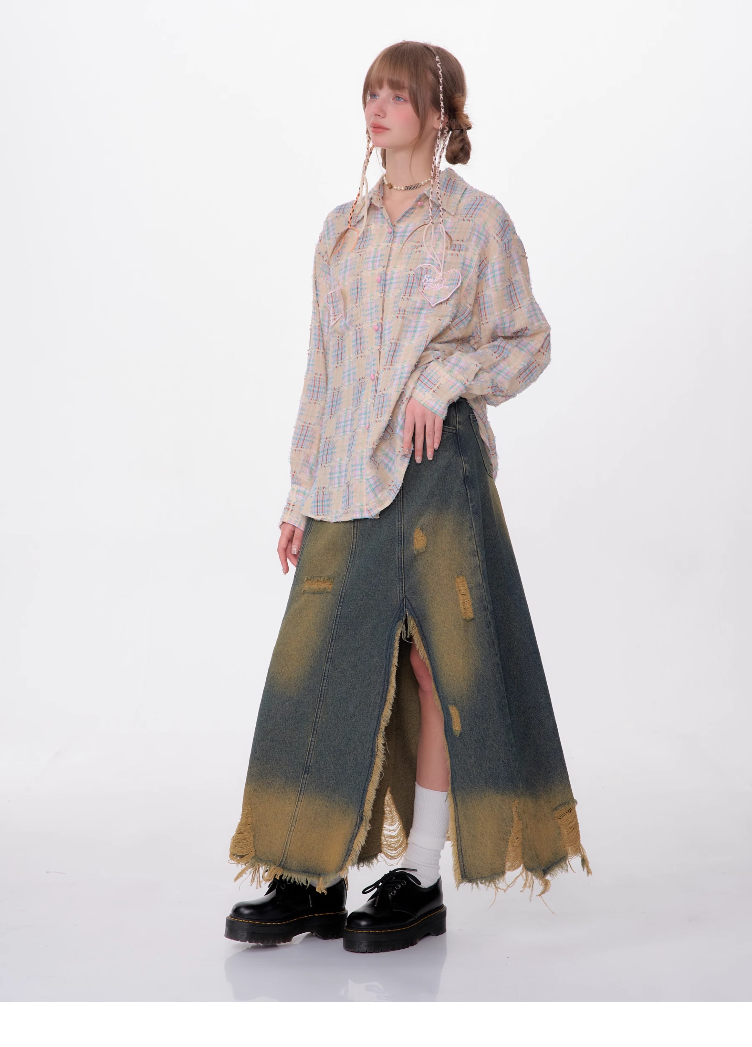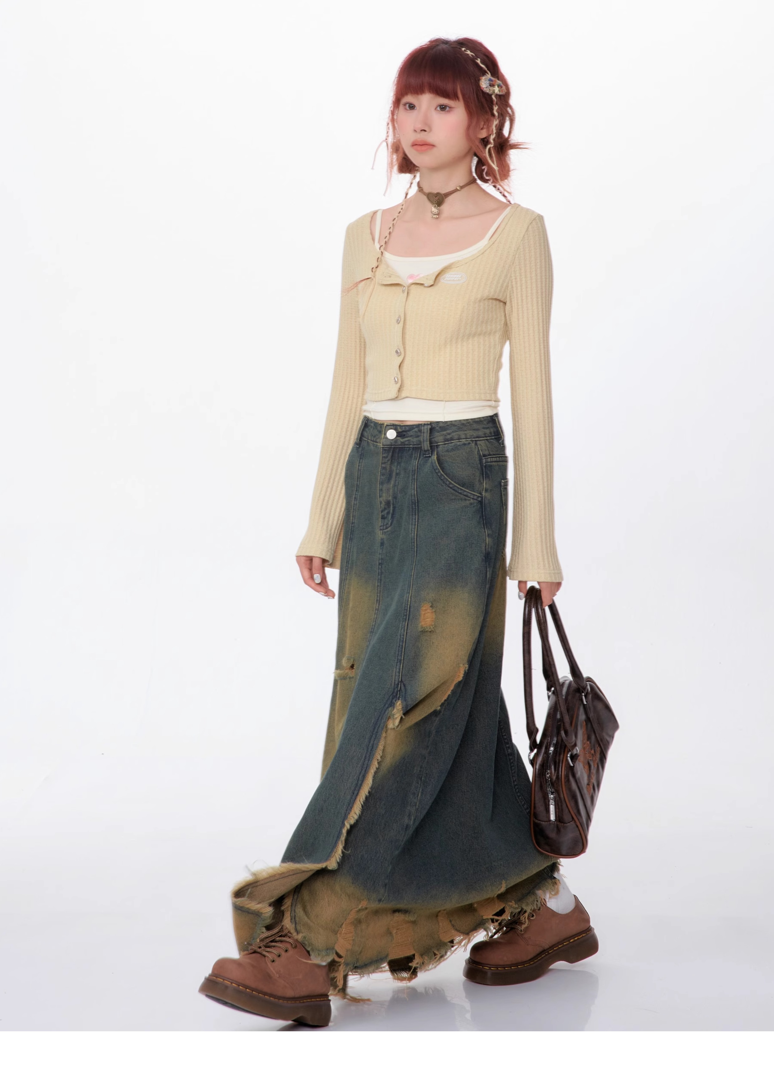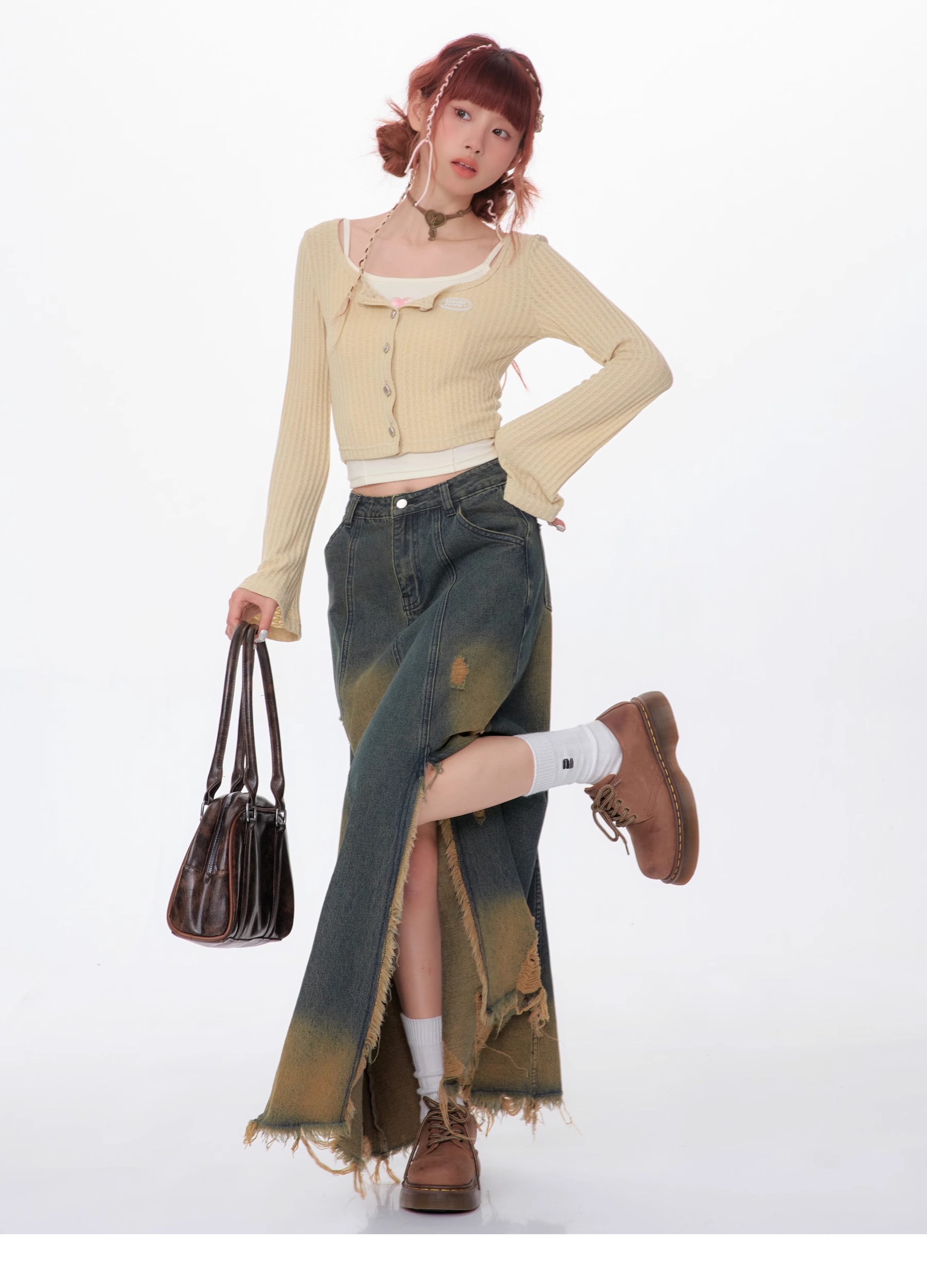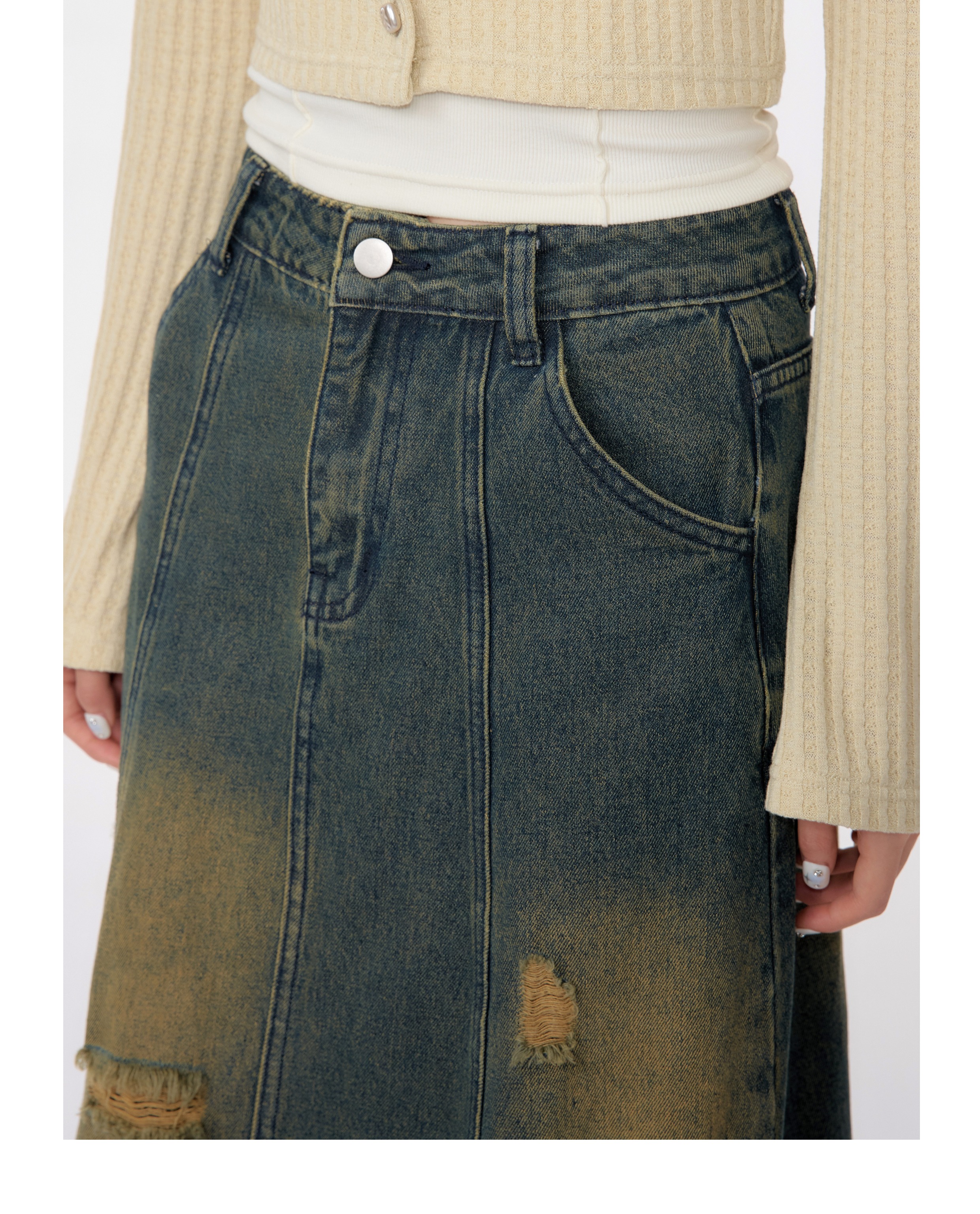 High Waist Mid-length Make Old Ripped Split Denim Skirt