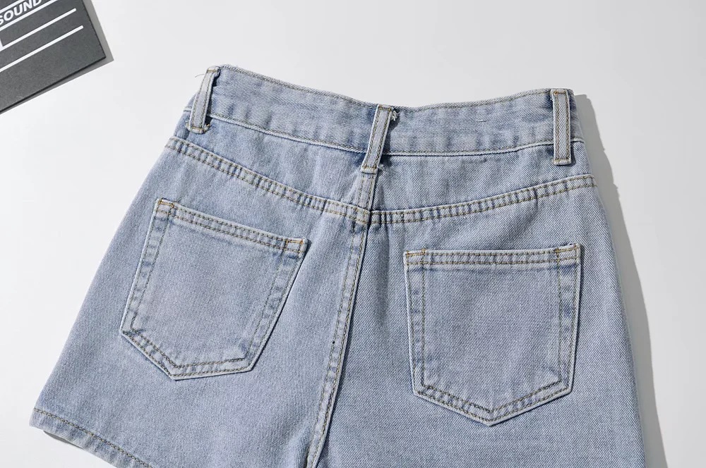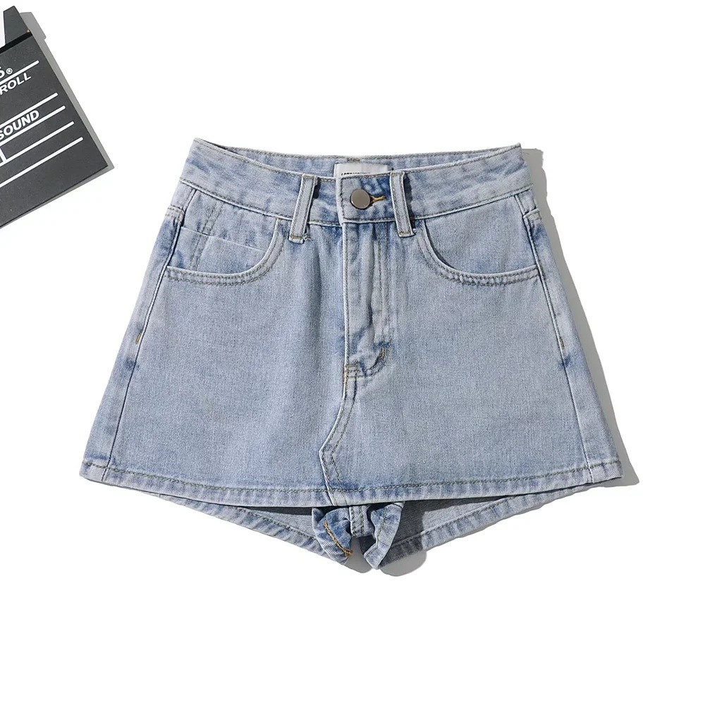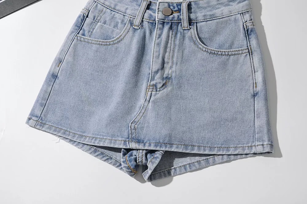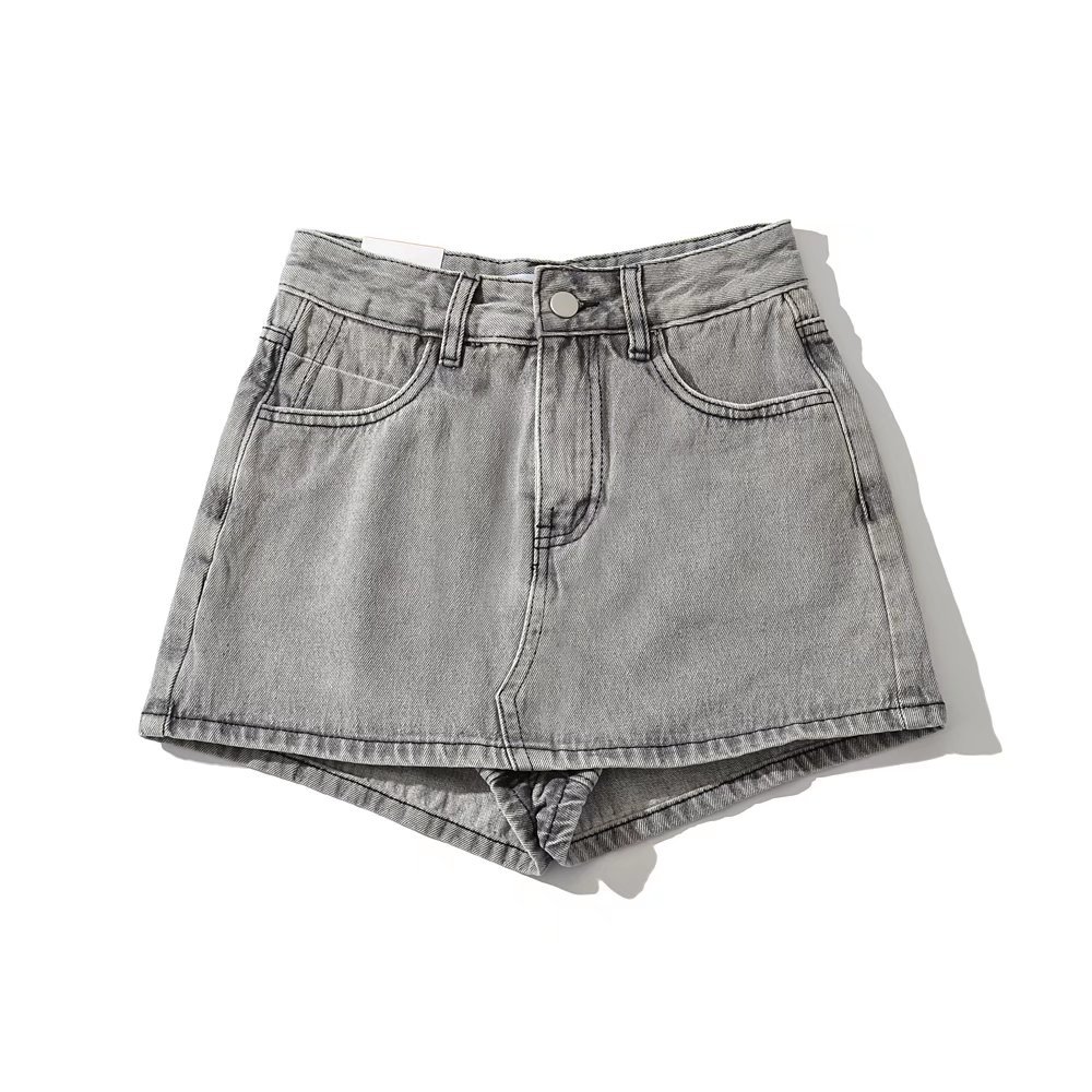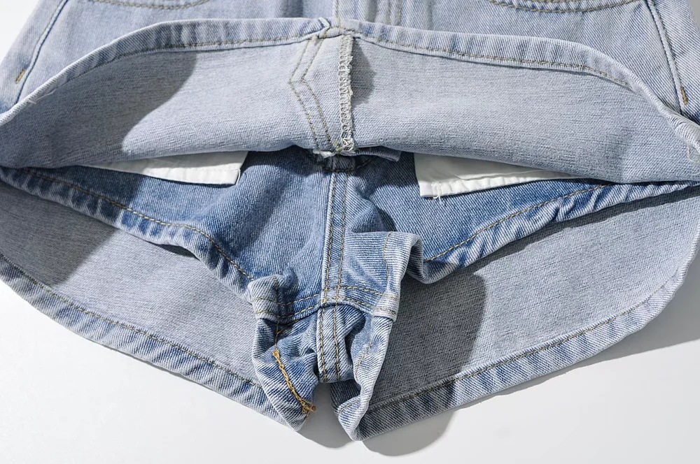 High Waist One Button Short Net Surface Denim Skirt