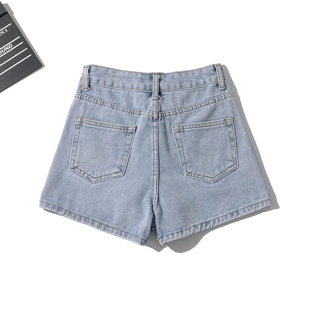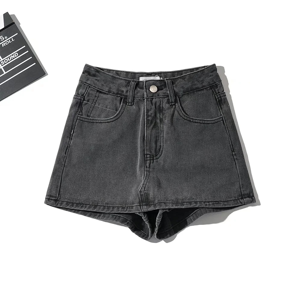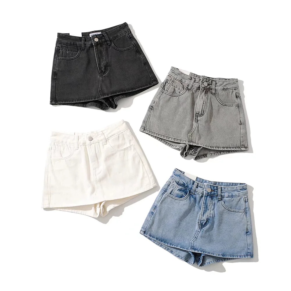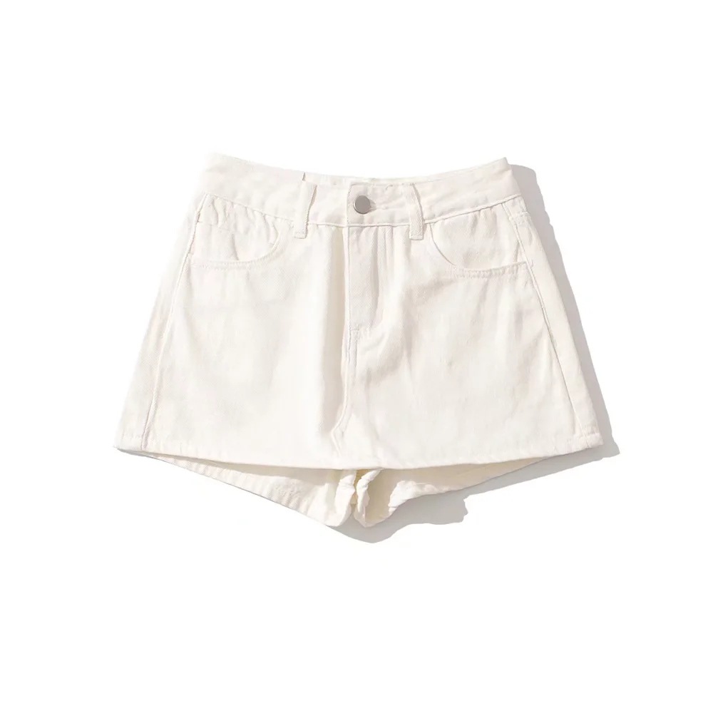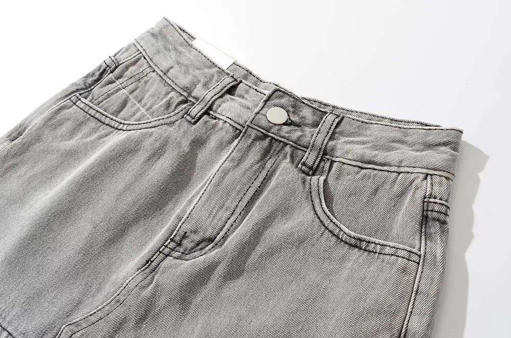 High Waist One Button Short Net Surface Denim Skirt