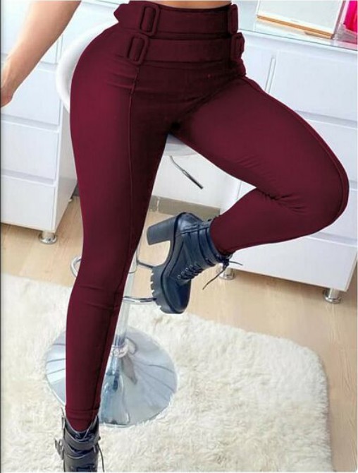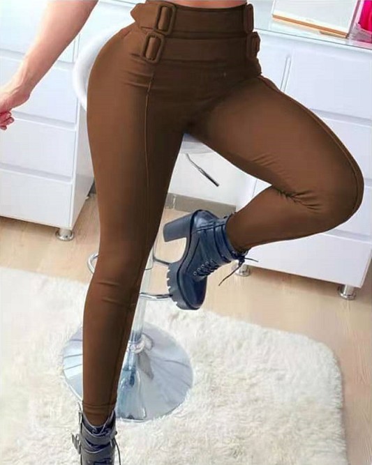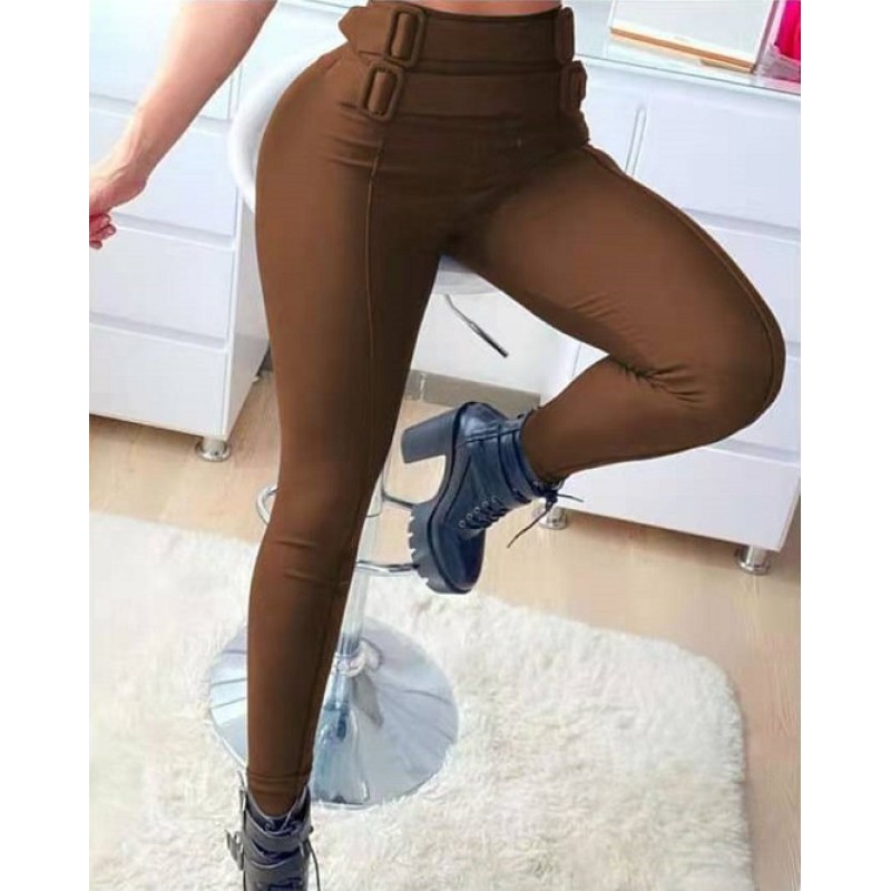 High Waist Skinny Trousers With Belt Decoration