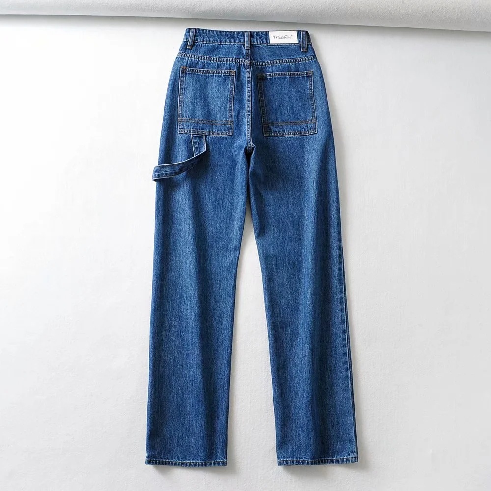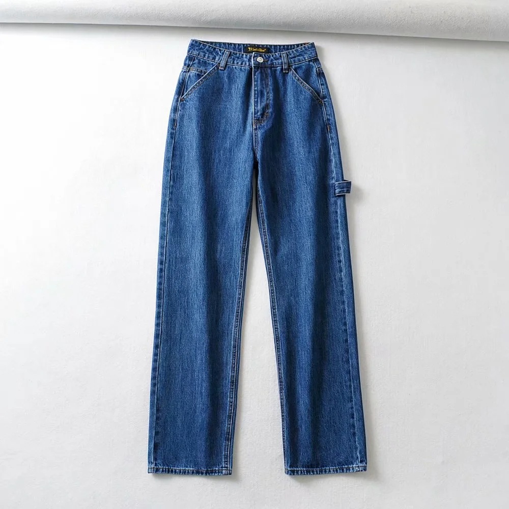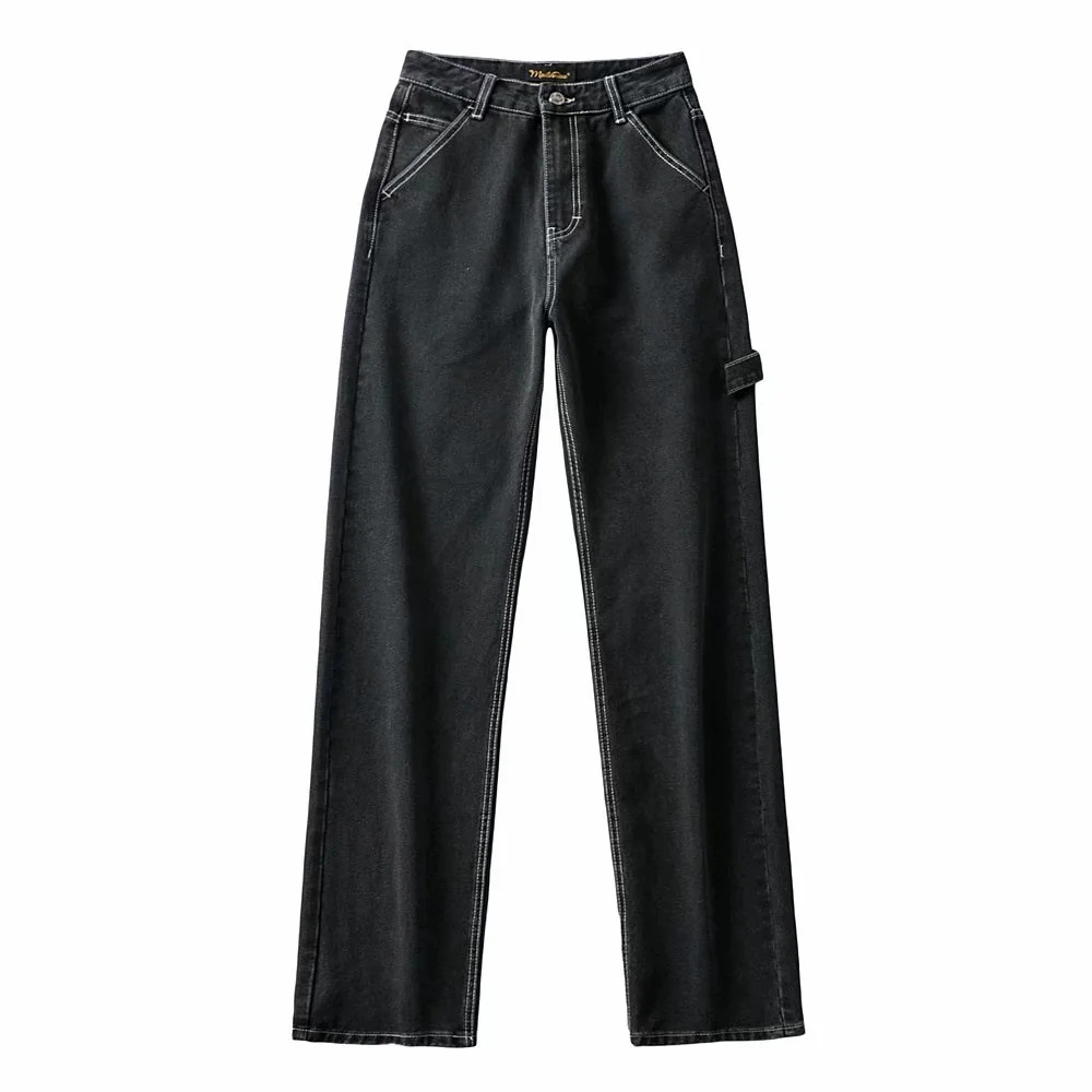 High Waist Slim Wide Leg Jeans Retro Tooling Fashion Stitching Long