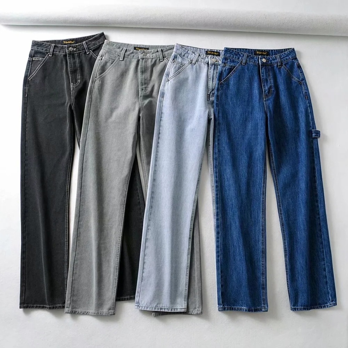 Popular elements: wash, zipper, button, retro fashion, high waist, thin, wide-legged tooling, dad, long legs